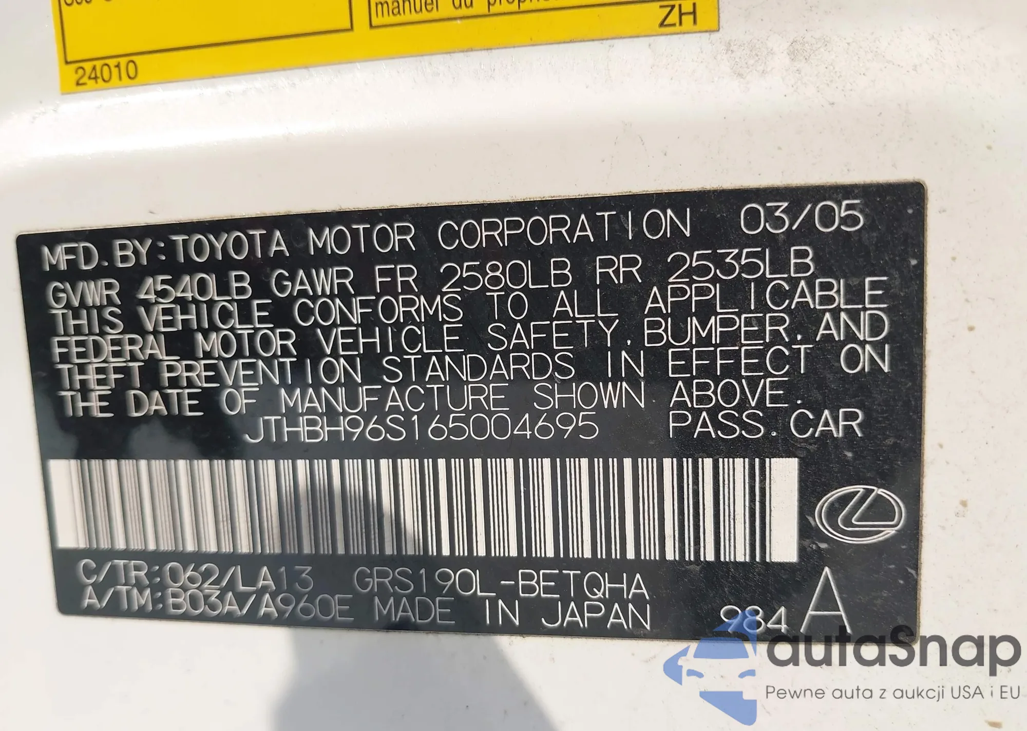 VIN: JTHBH96S165004695