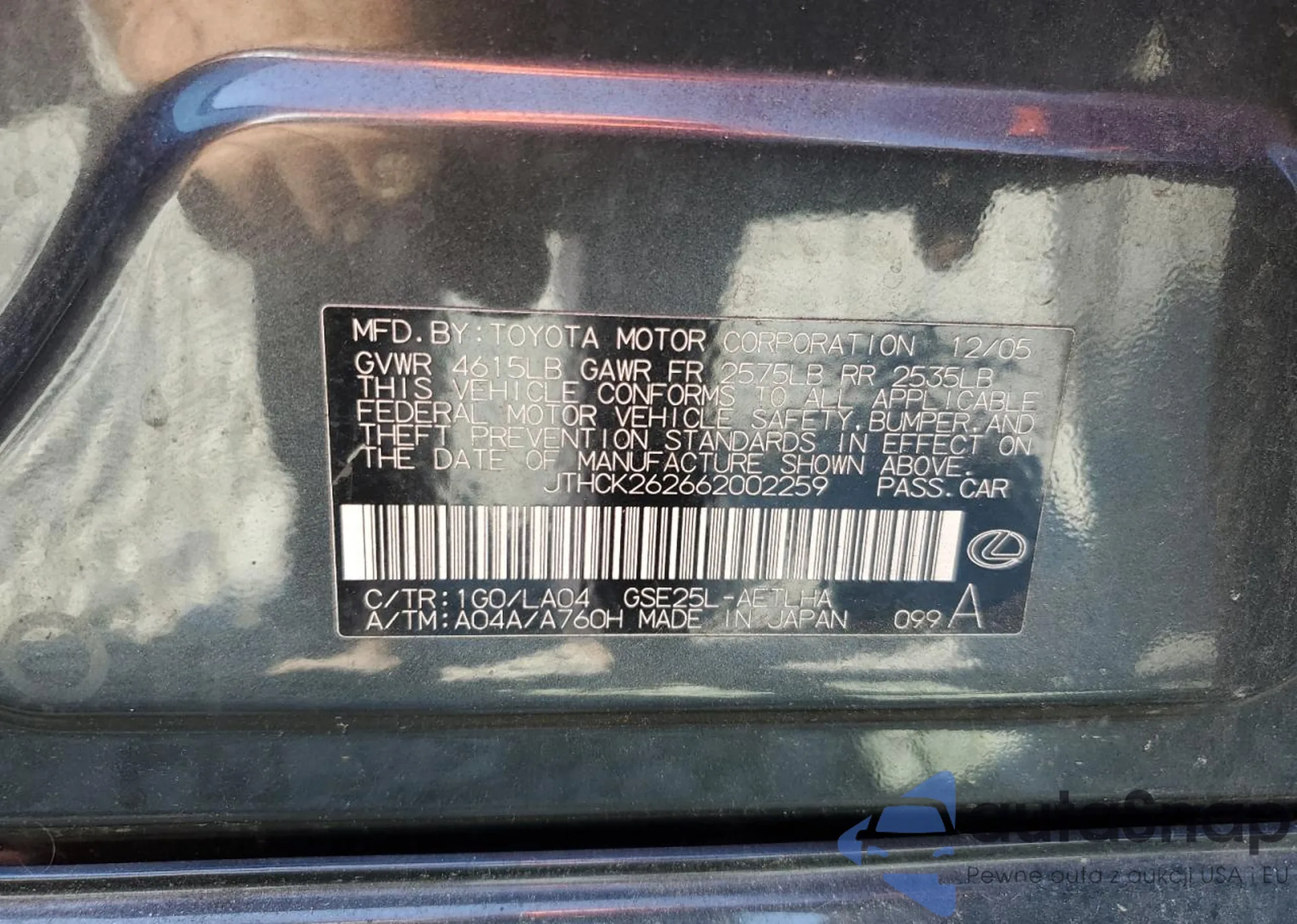 VIN: JTHCK262662002259