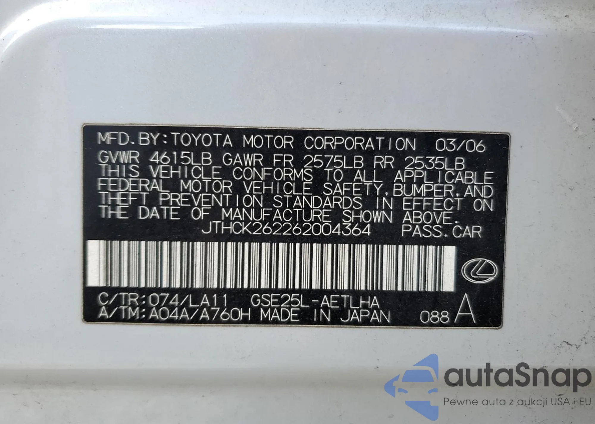 VIN: JTHCK262262004364