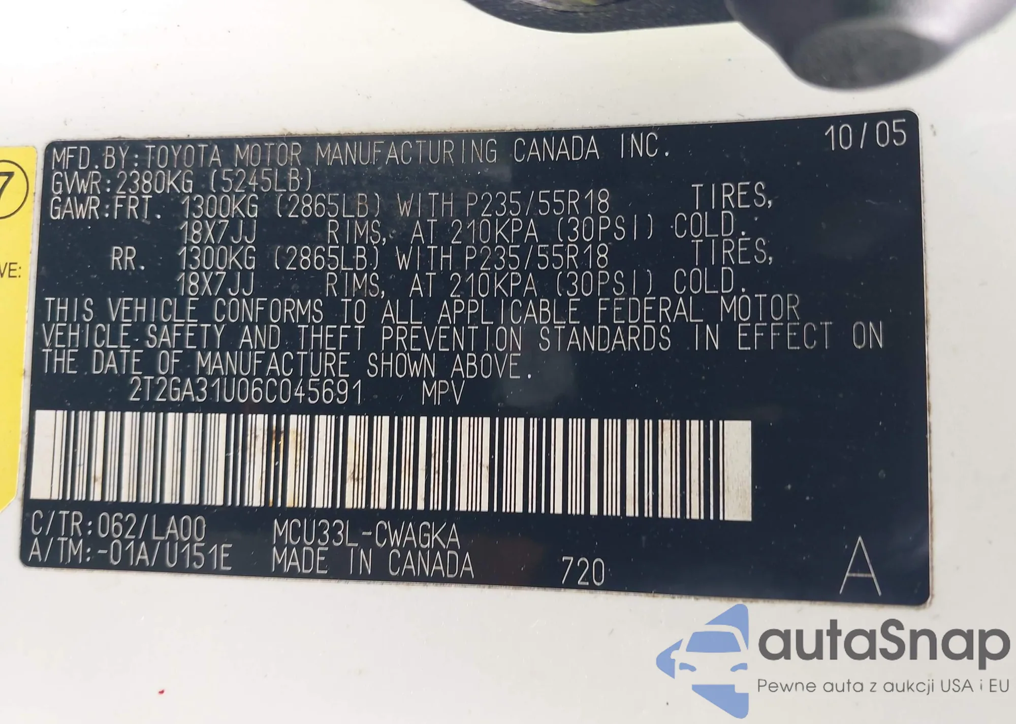 VIN: 2T2GA31U06C045691