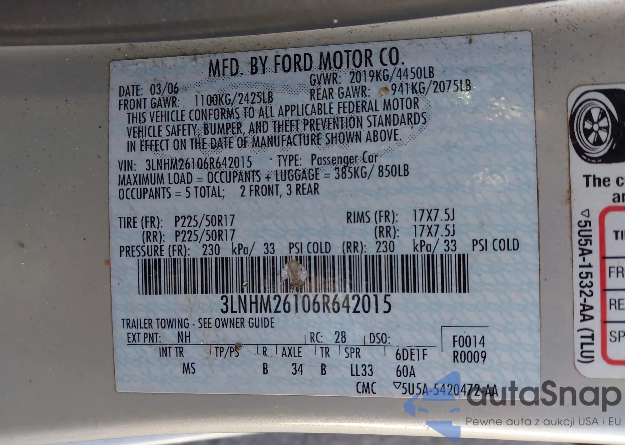 The car Lincoln Zephyr 2006 (VIN 3LNHM26106R642015) is sold by an unverified seller. We recommend checking the Carfax report and confirming registration possibilities before purchase.