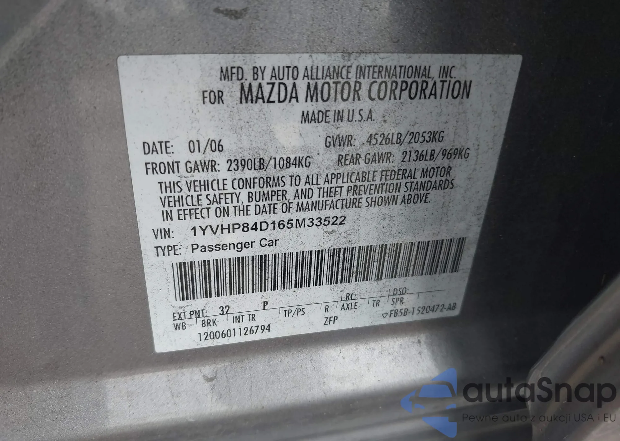 VIN: 1YVHP84D165M33522