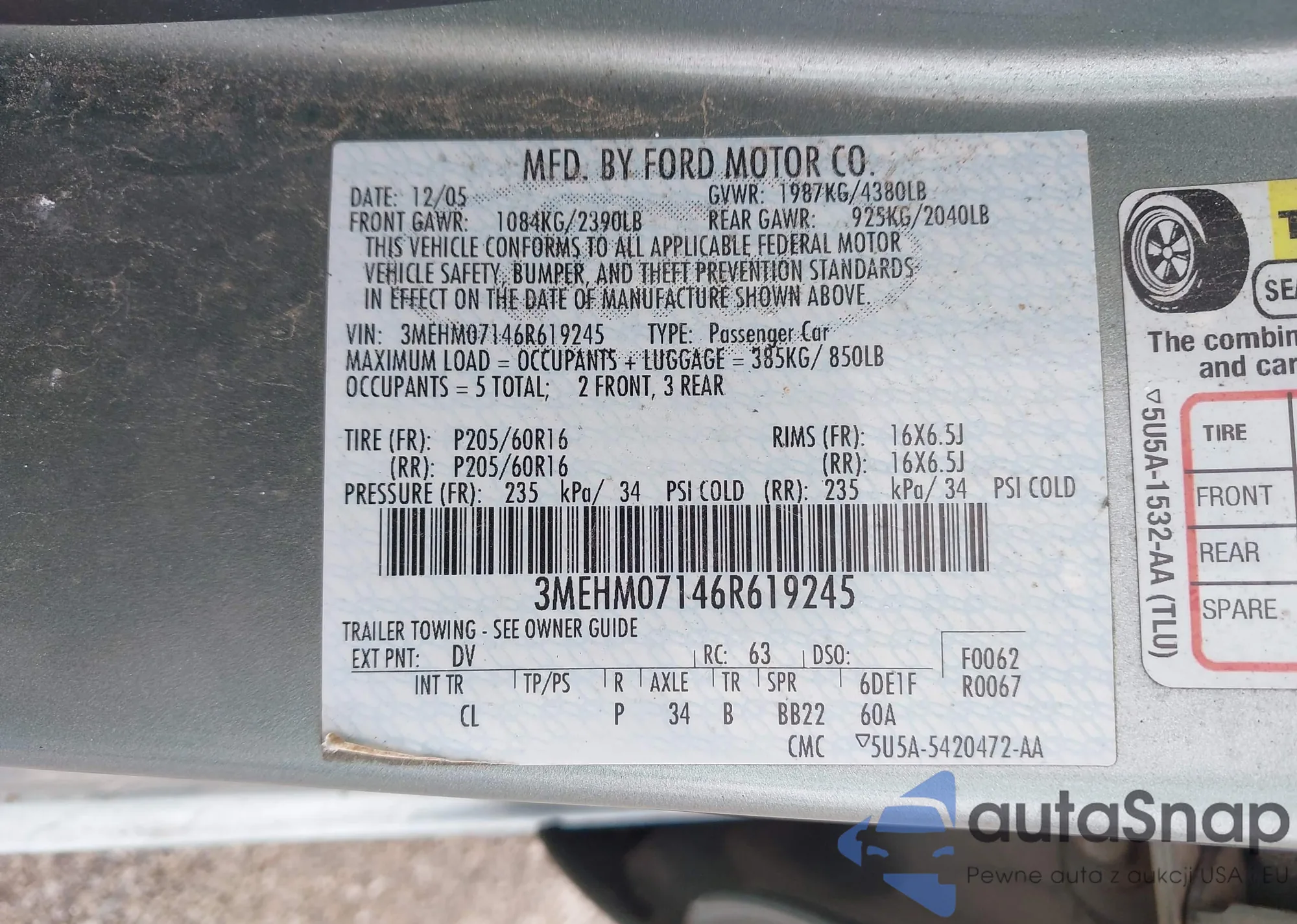 Make: 2006 Mercury Milan V6