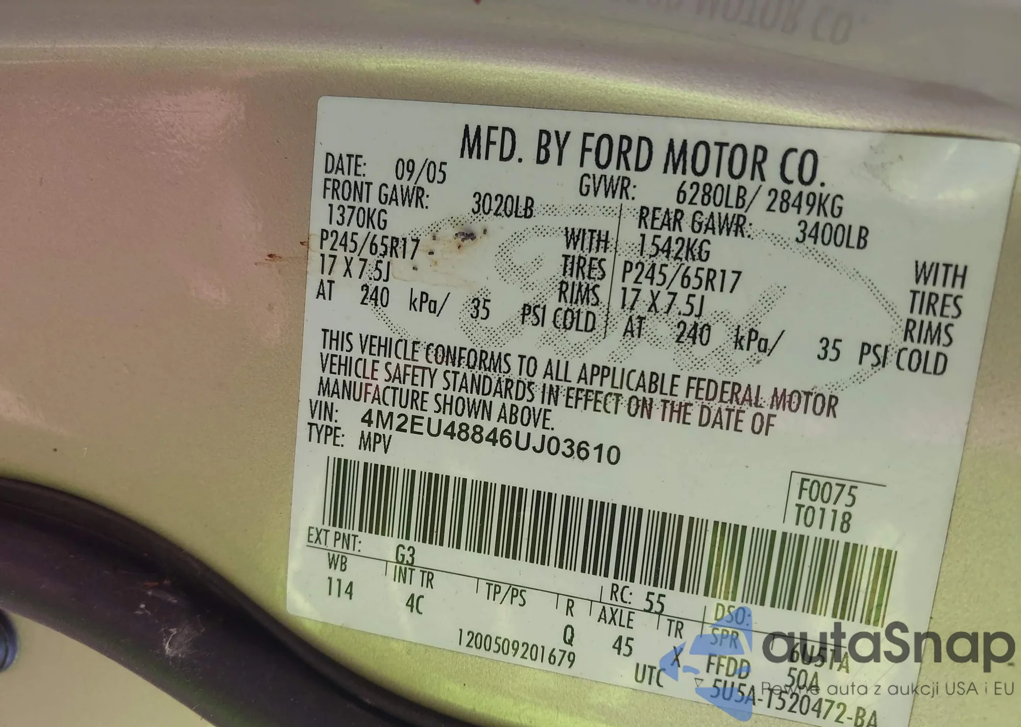 VIN: 4M2EU48846UJ03610