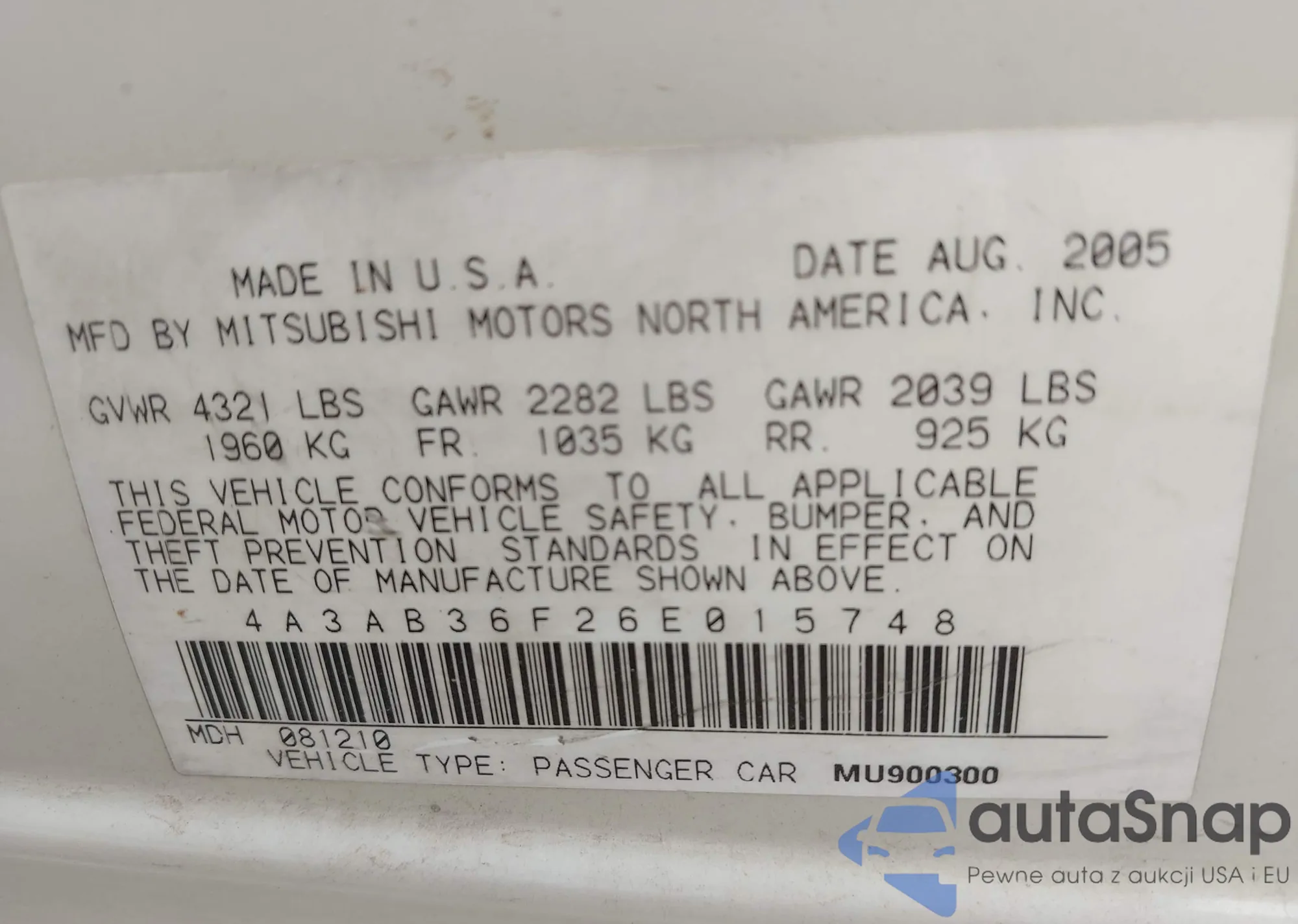 VIN: 4A3AB36F26E015748