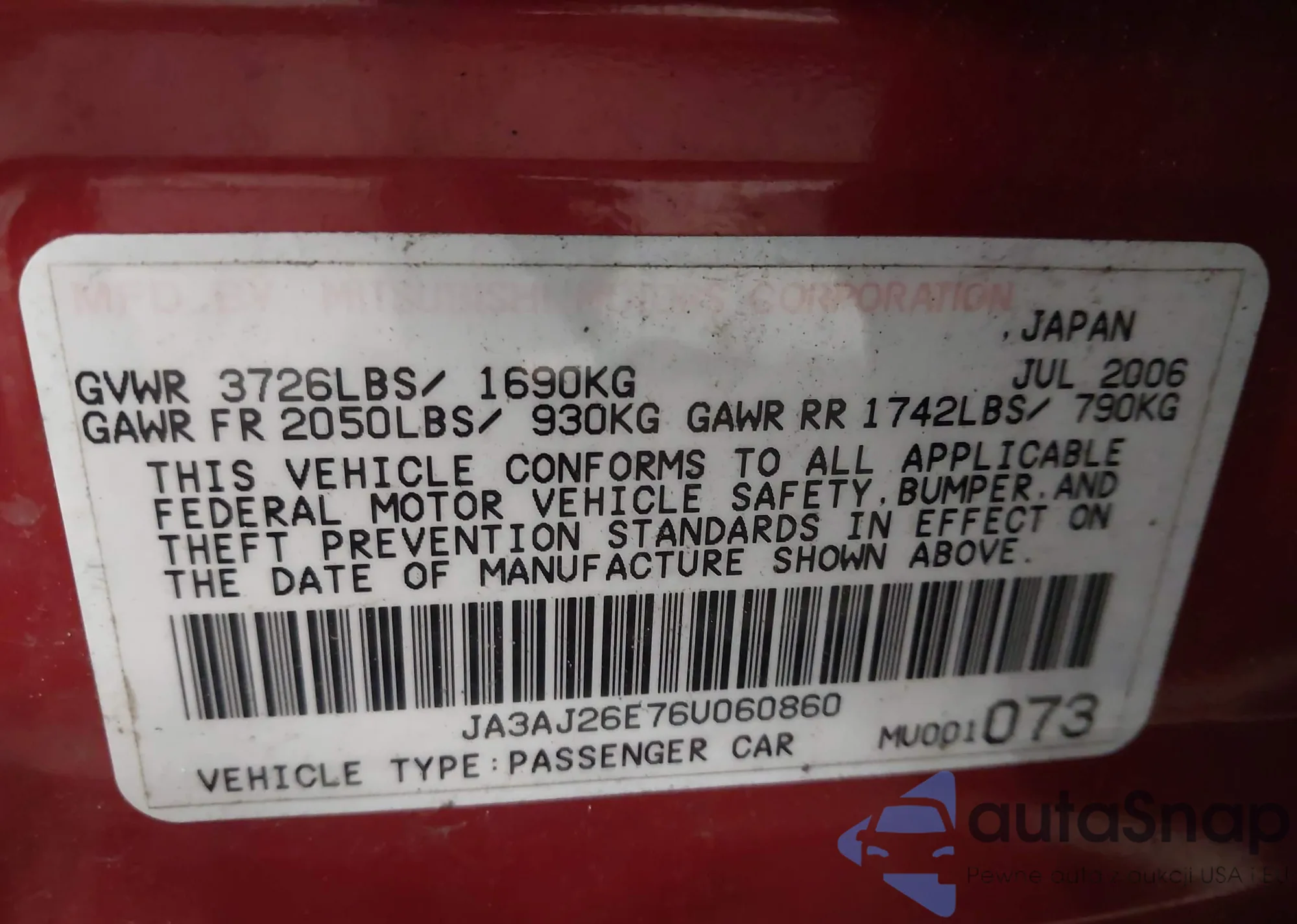 VIN: JA3AJ26E76U060860