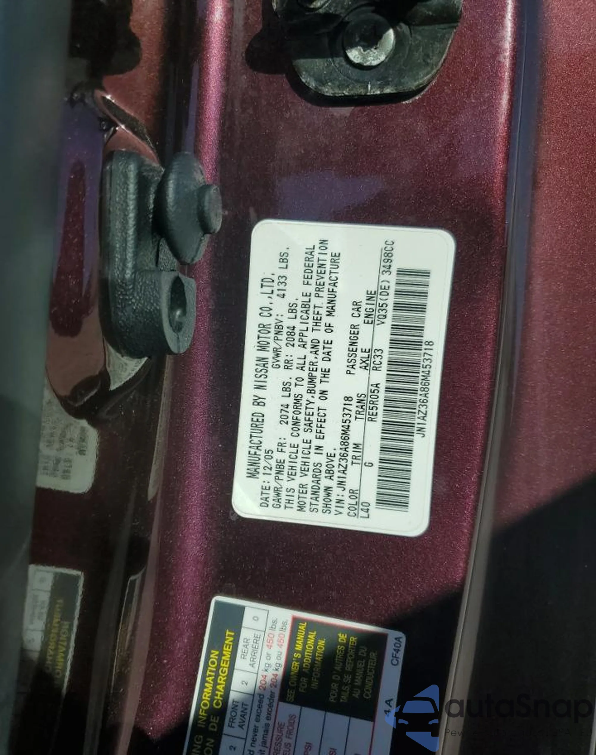 VIN: JN1AZ36A86M453718