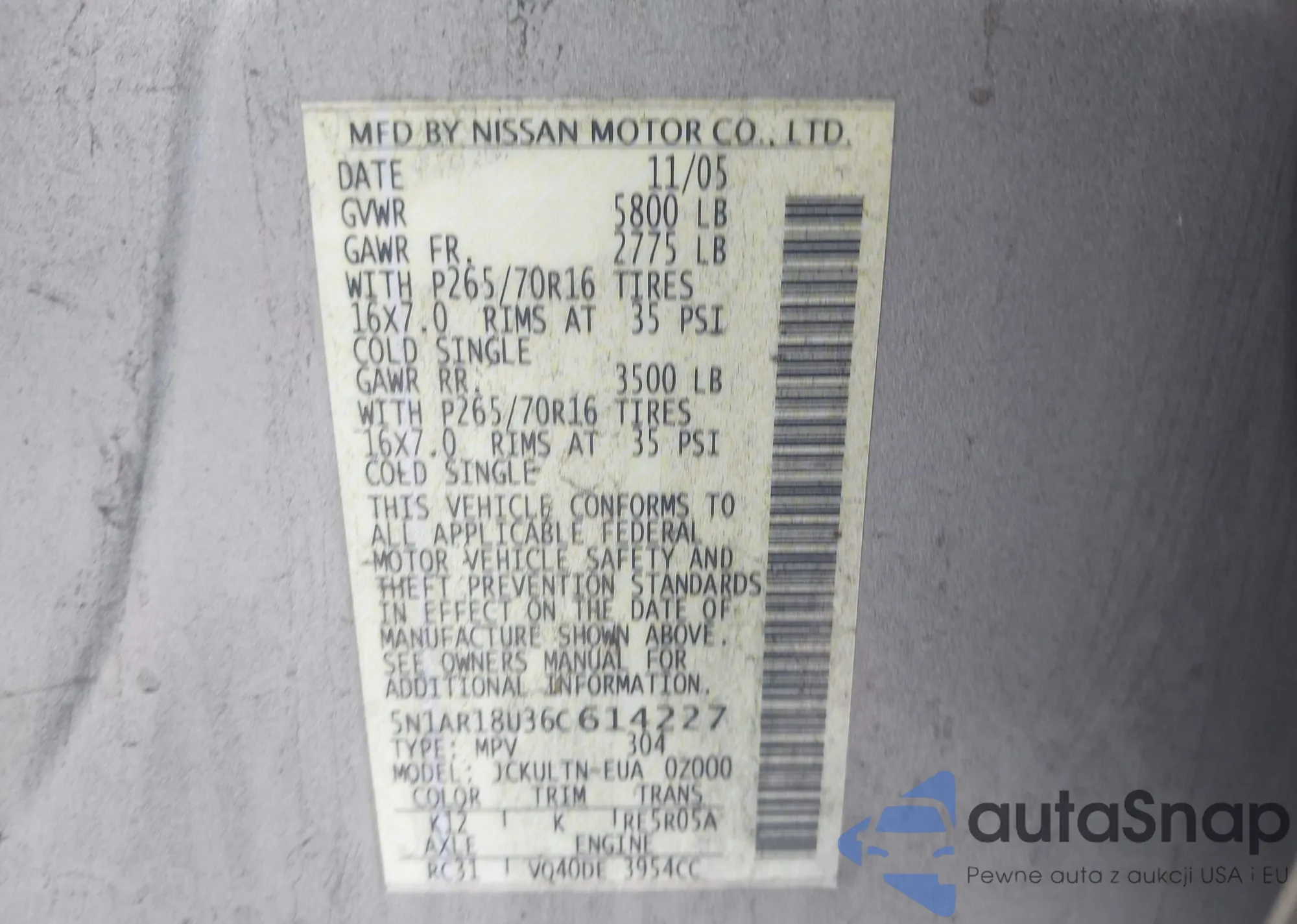 VIN: 5N1AR18U36C614227