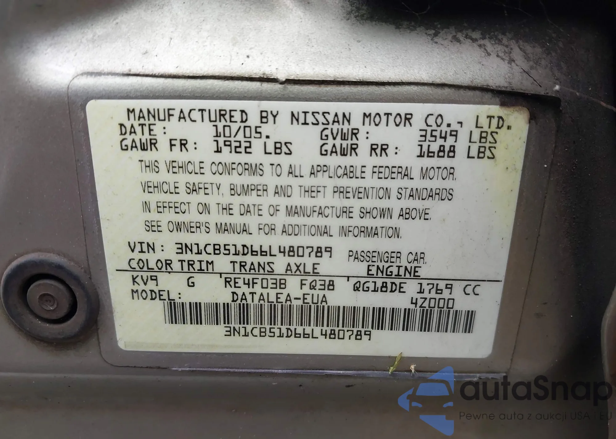 VIN: 3N1CB51D66L480789