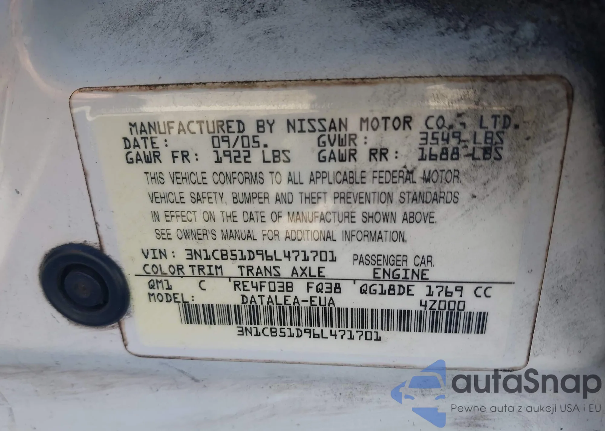 VIN: 3N1CB51D96L471701