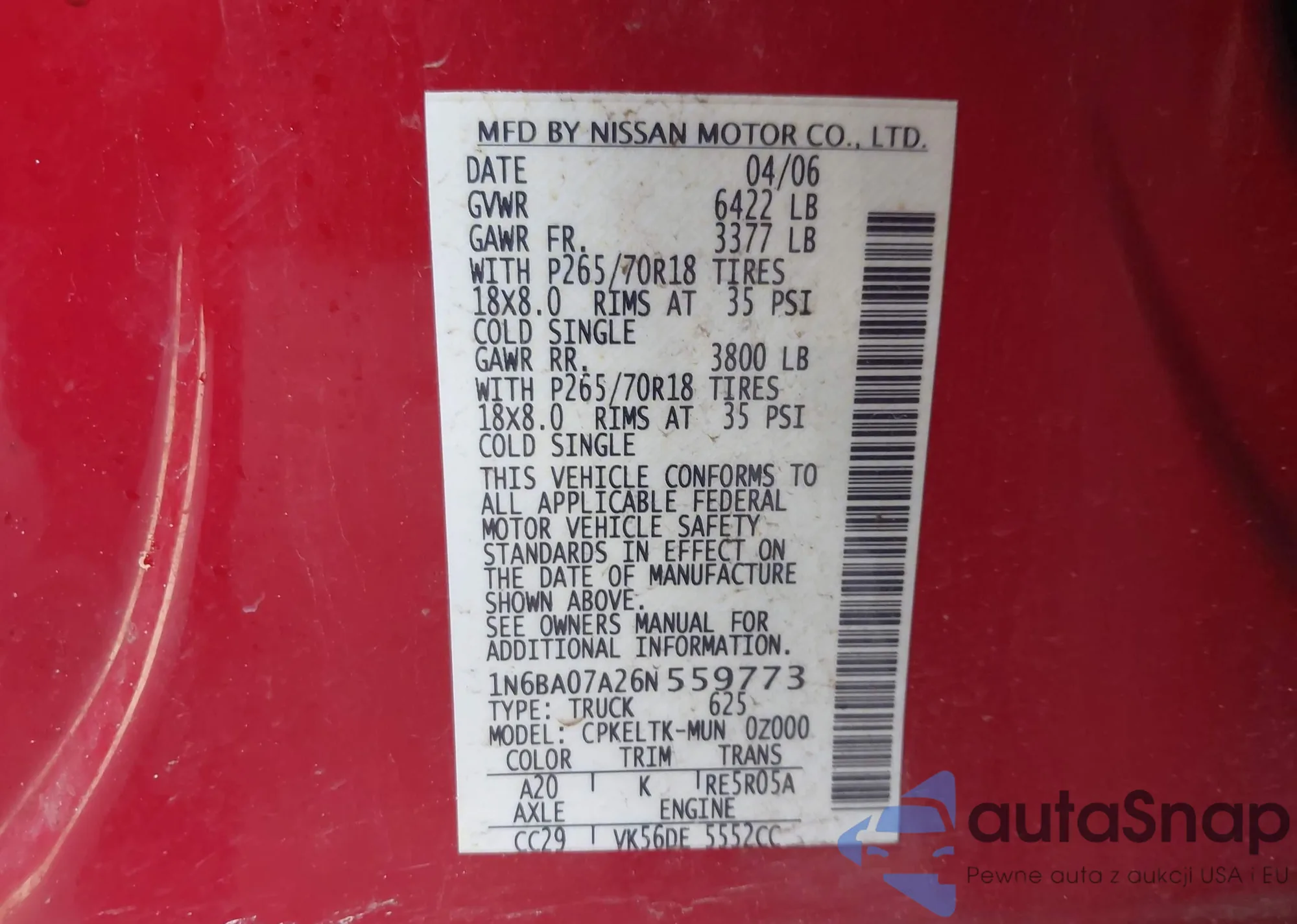 VIN: 1N6BA07A26N559773