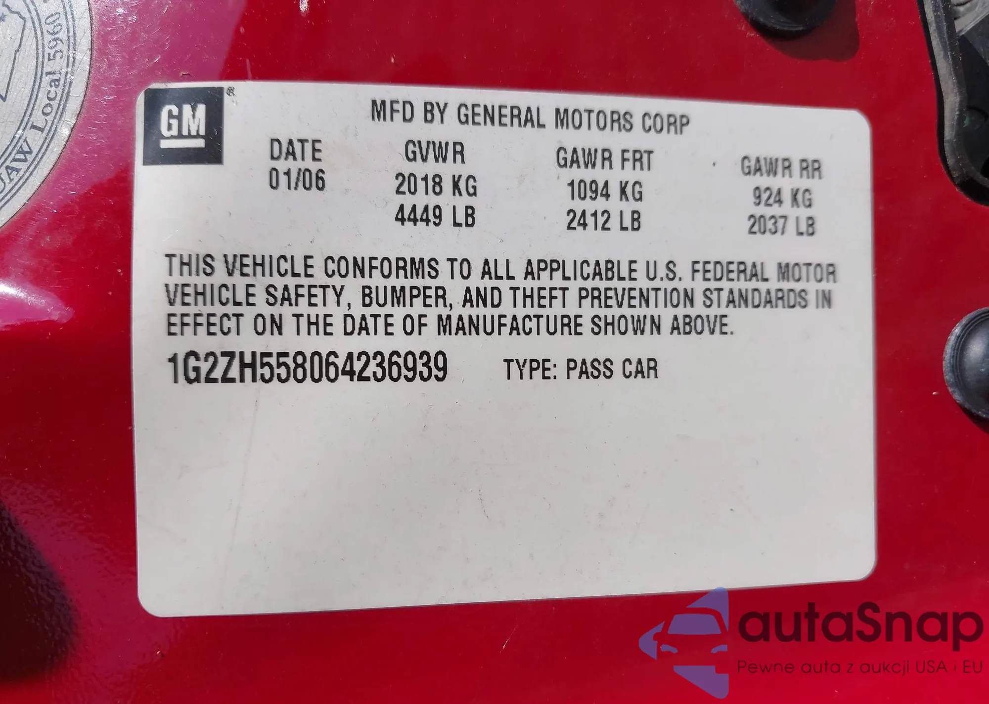 • VIN: 1G2ZH558064236939