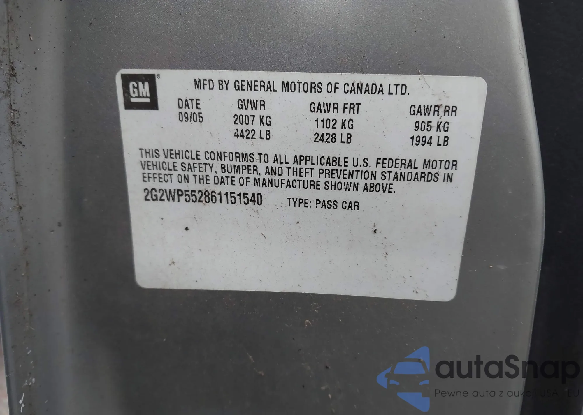 The car Pontiac Grand Prix 2006 (VIN 2G2WP552861151540) is sold by an unverified seller. We recommend checking the Carfax report and confirming registration possibilities before purchase.