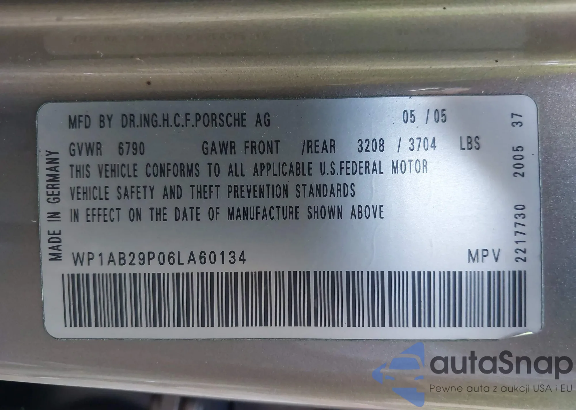 VIN: WP1AB29P06LA60134