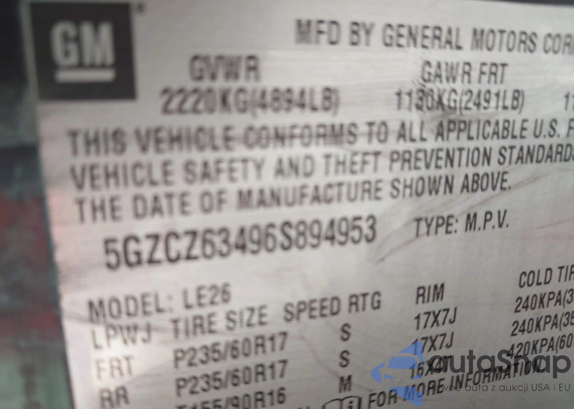 VIN: 5GZCZ63496S894953