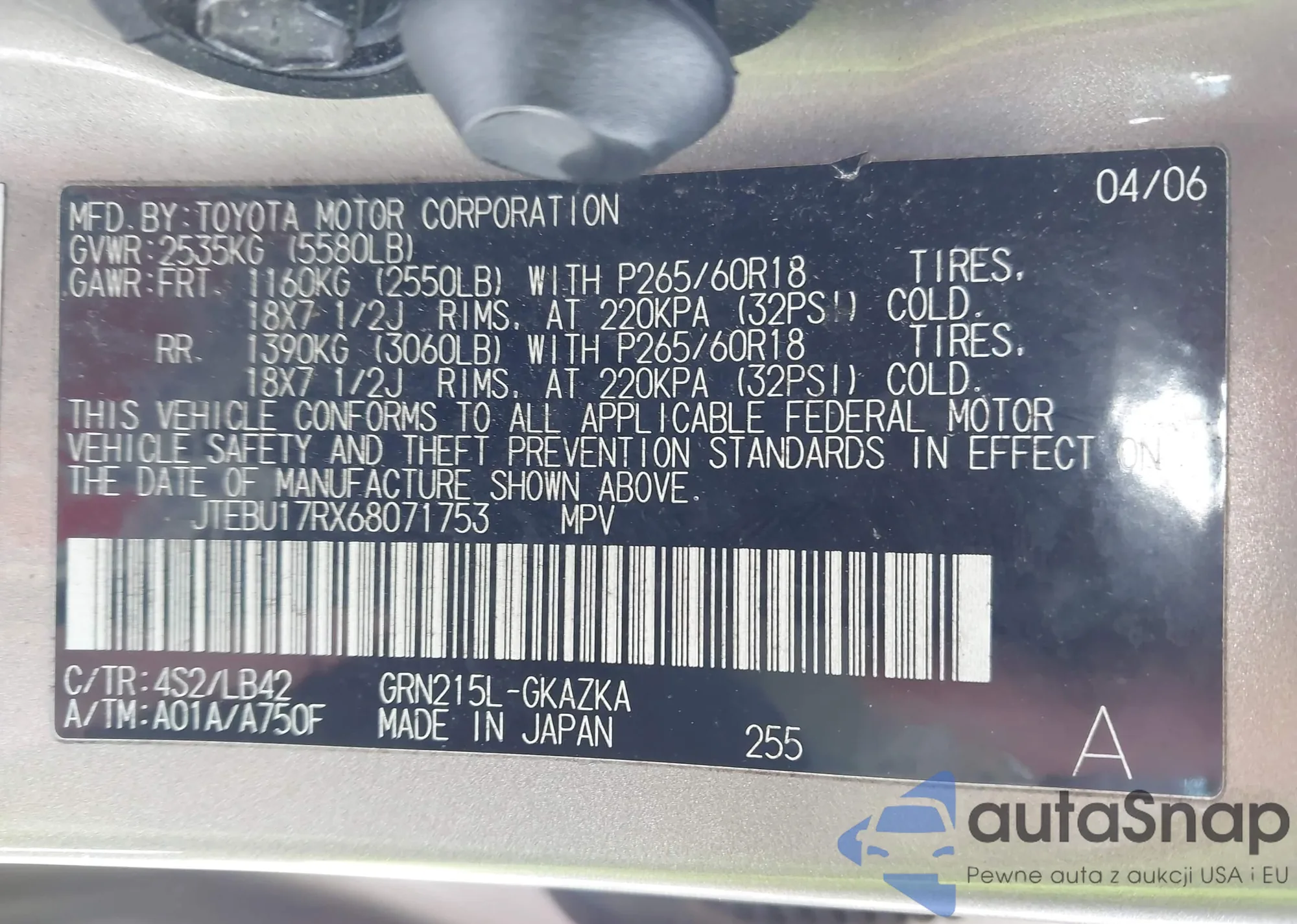 VIN: JTEBU17RX68071753