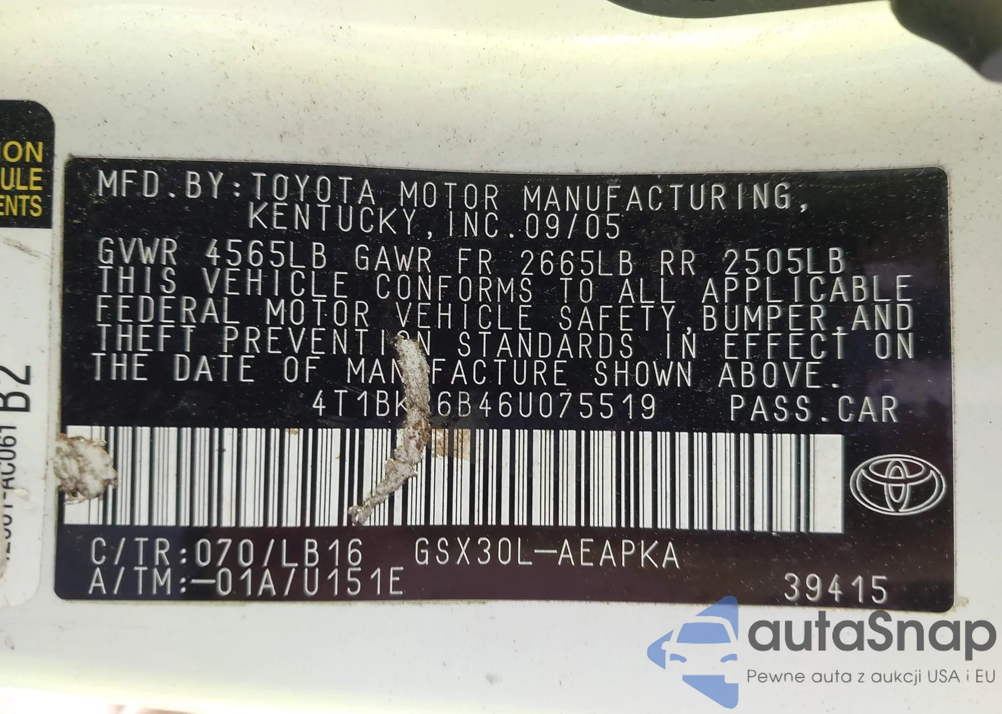 The car Toyota Avalon 2006 (VIN 4T1BK36B46U075519) is sold by an unverified seller. We recommend checking the Carfax report and confirming registration possibilities before purchase.