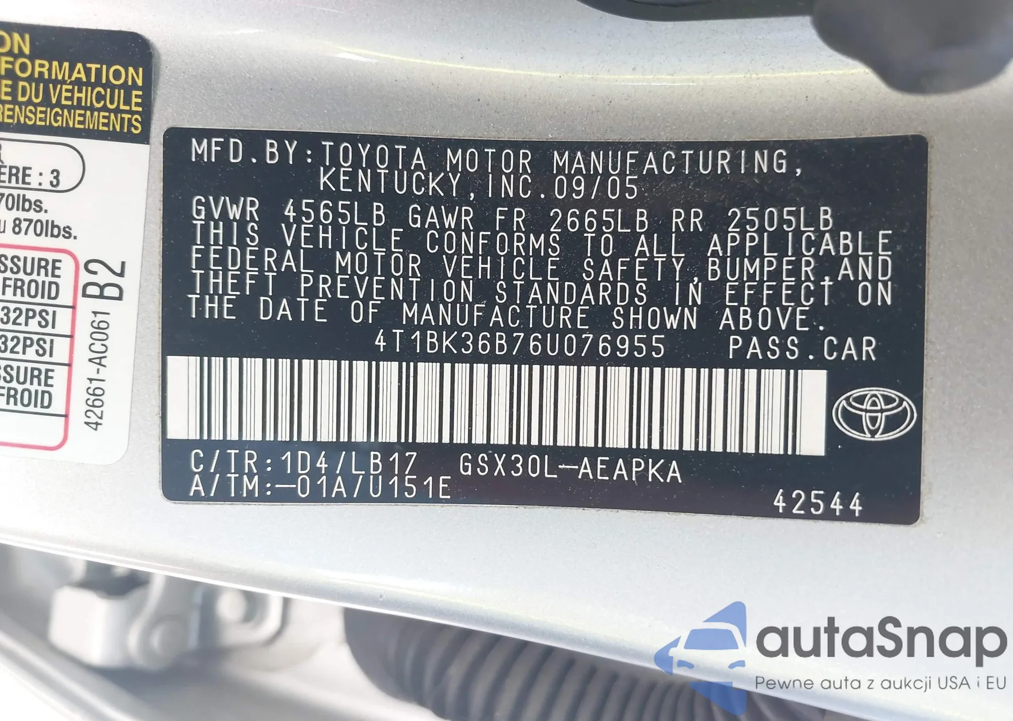 • VIN: 4T1BK36B76U076955