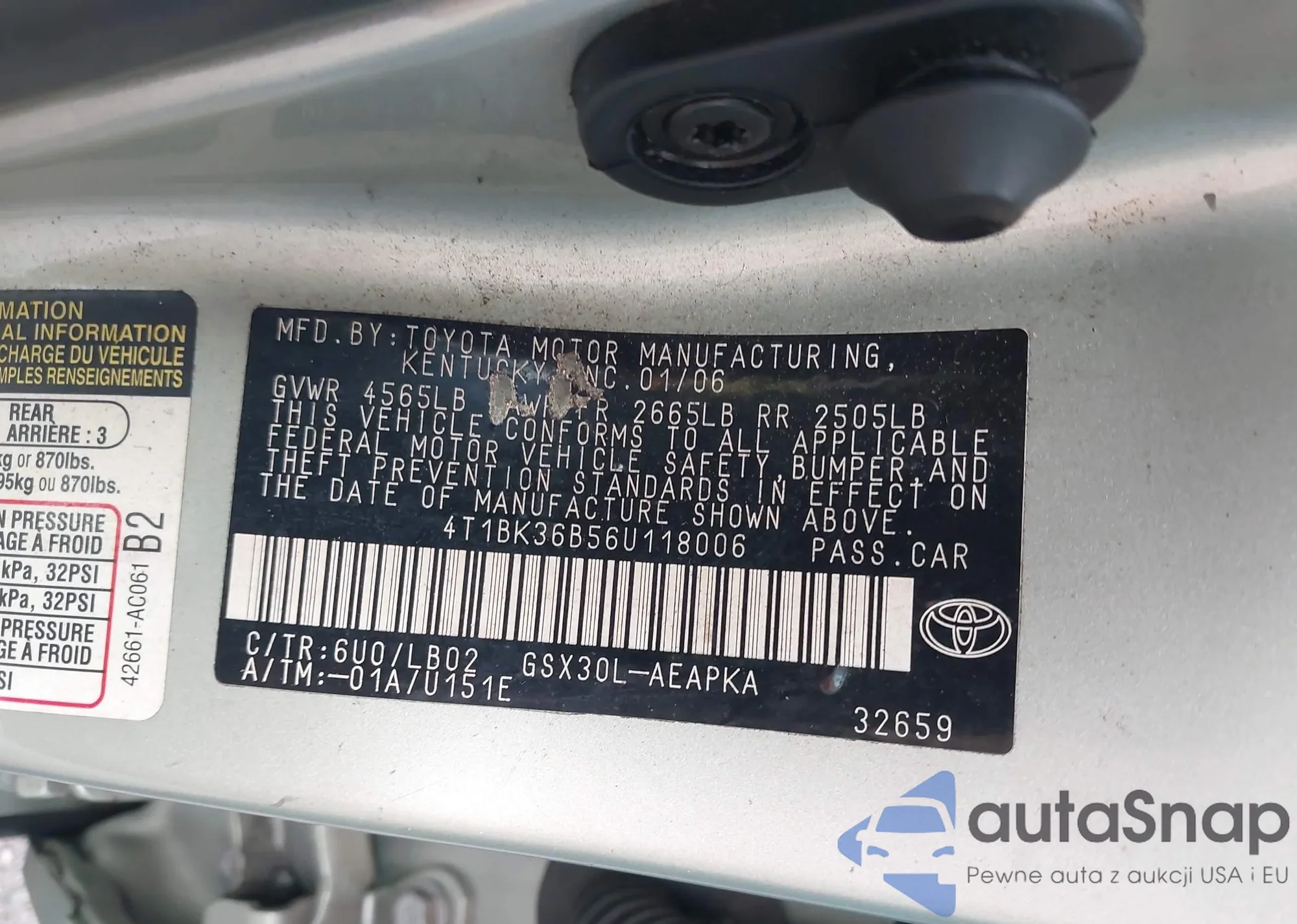 VIN: 4T1BK36B56U118006