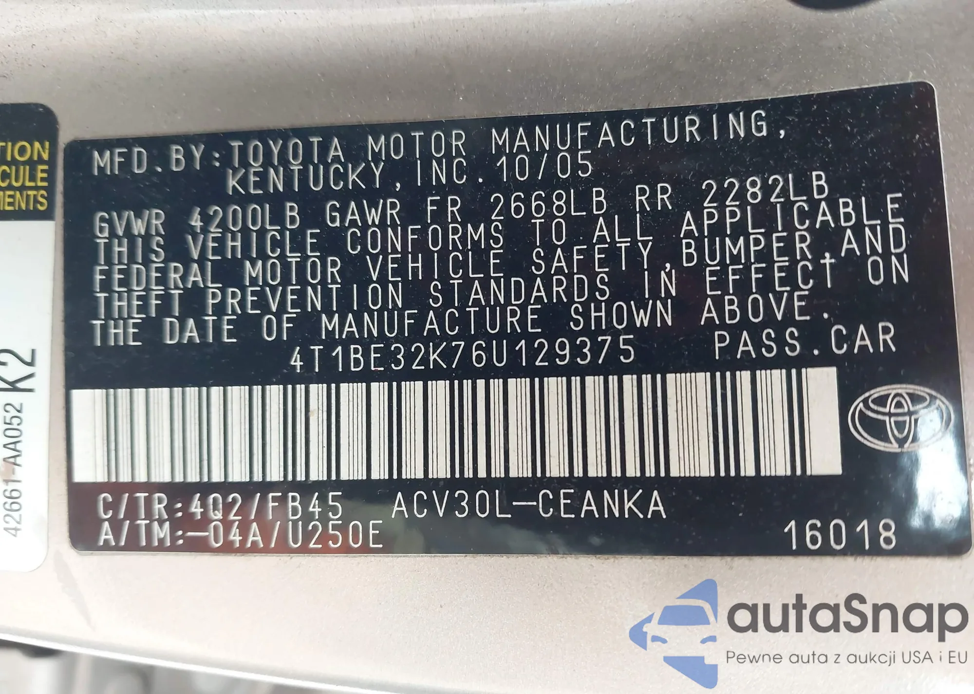 VIN: 4T1BE32K76U129375