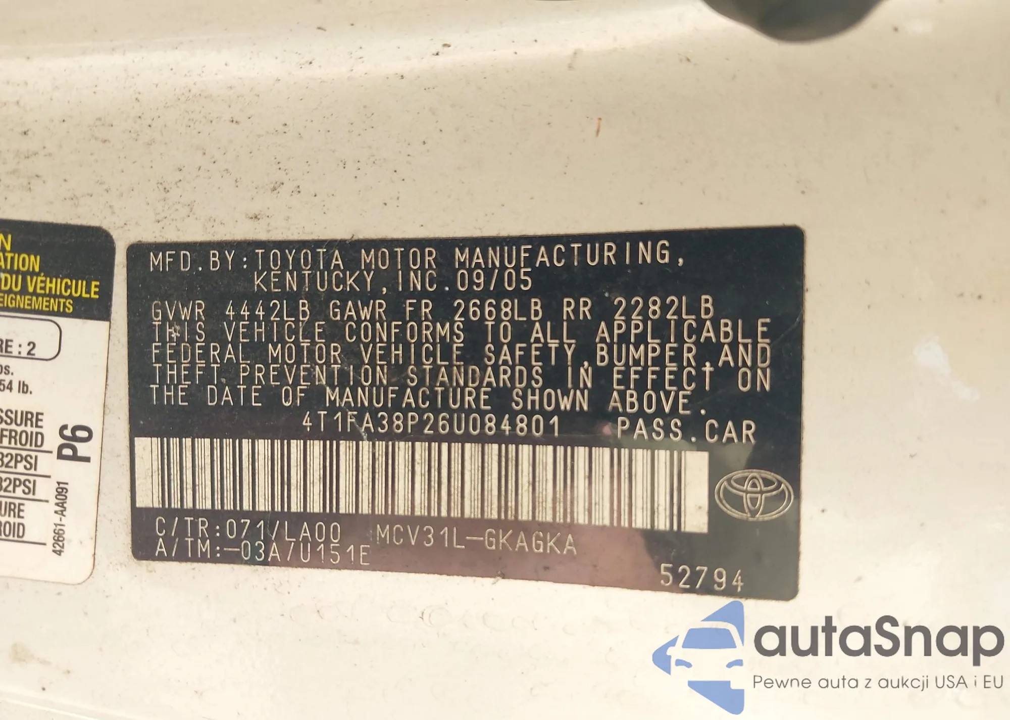 VIN: 4T1FA38P26U084801