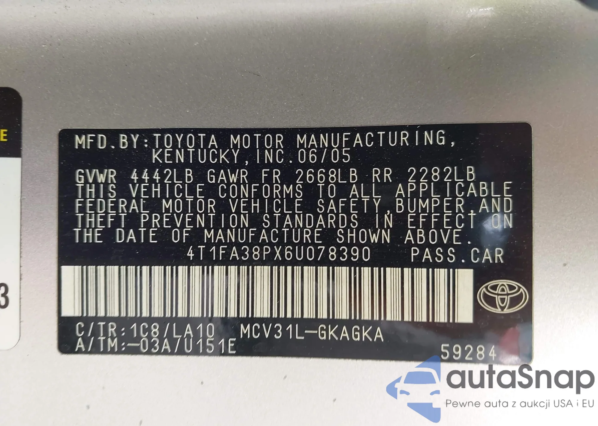 VIN: 4T1FA38PX6U078390
