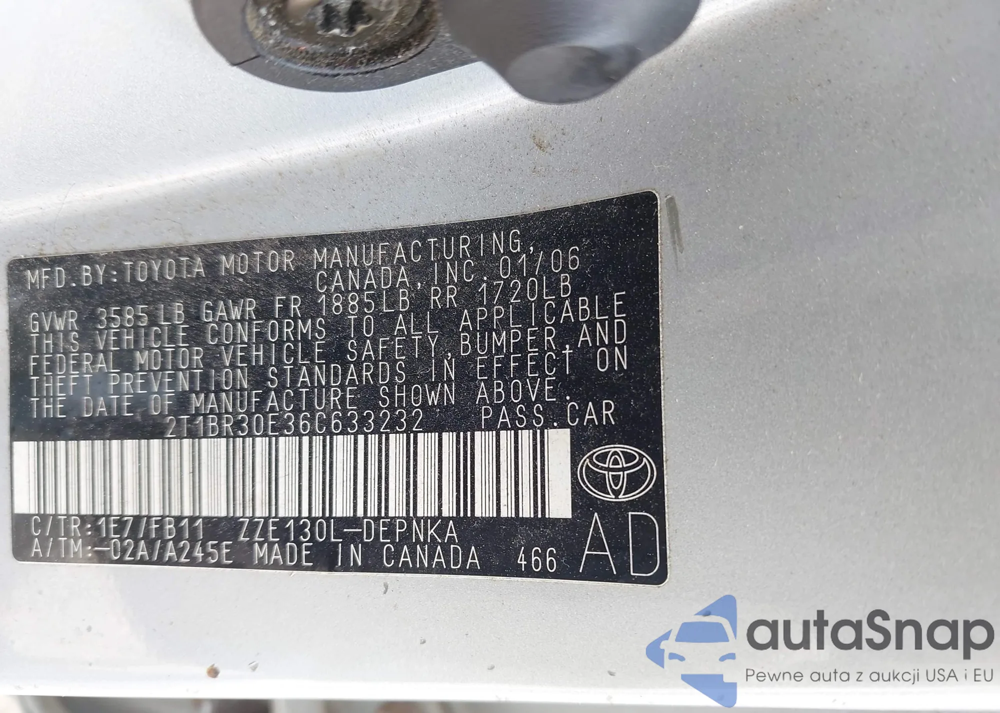VIN: 2T1BR30E36C633232
