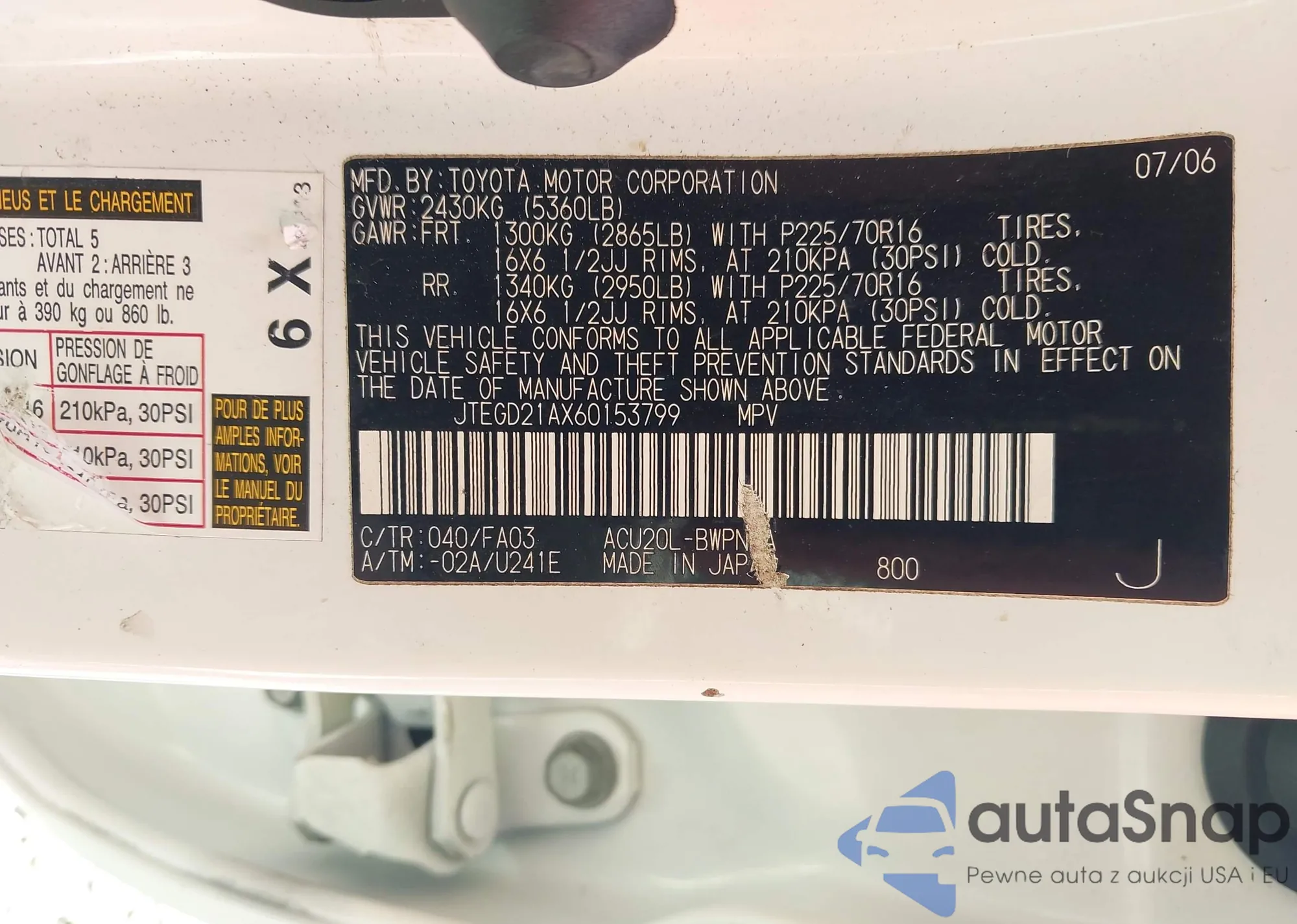 VIN: JTEGD21AX60153799