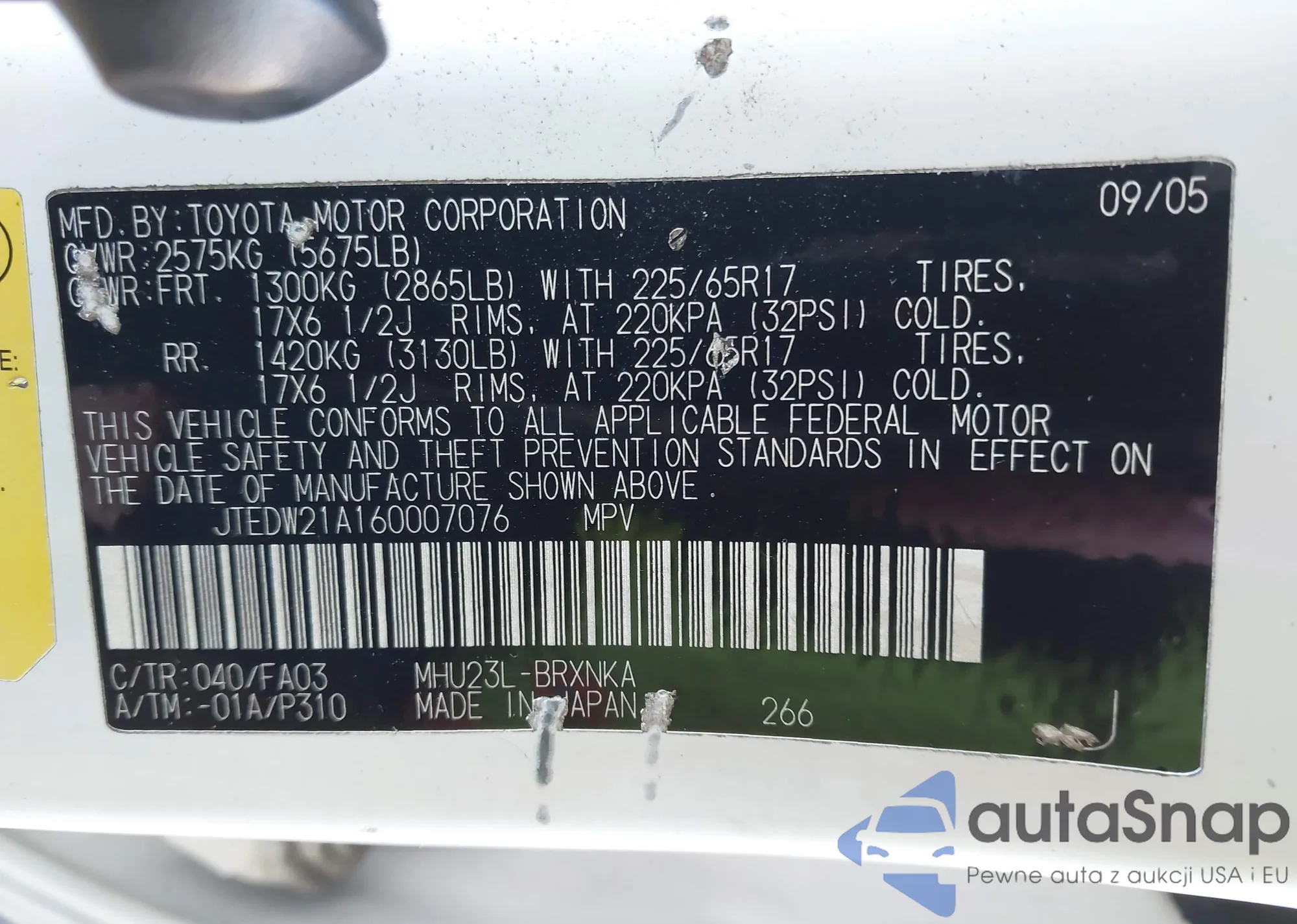 • VIN: JTEDW21A160007076