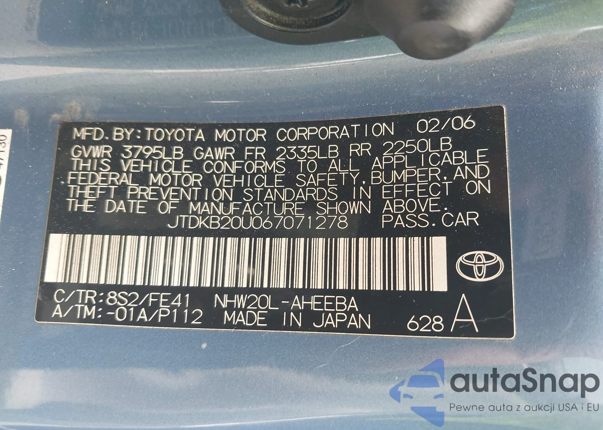 VIN: JTDKB20U067071278