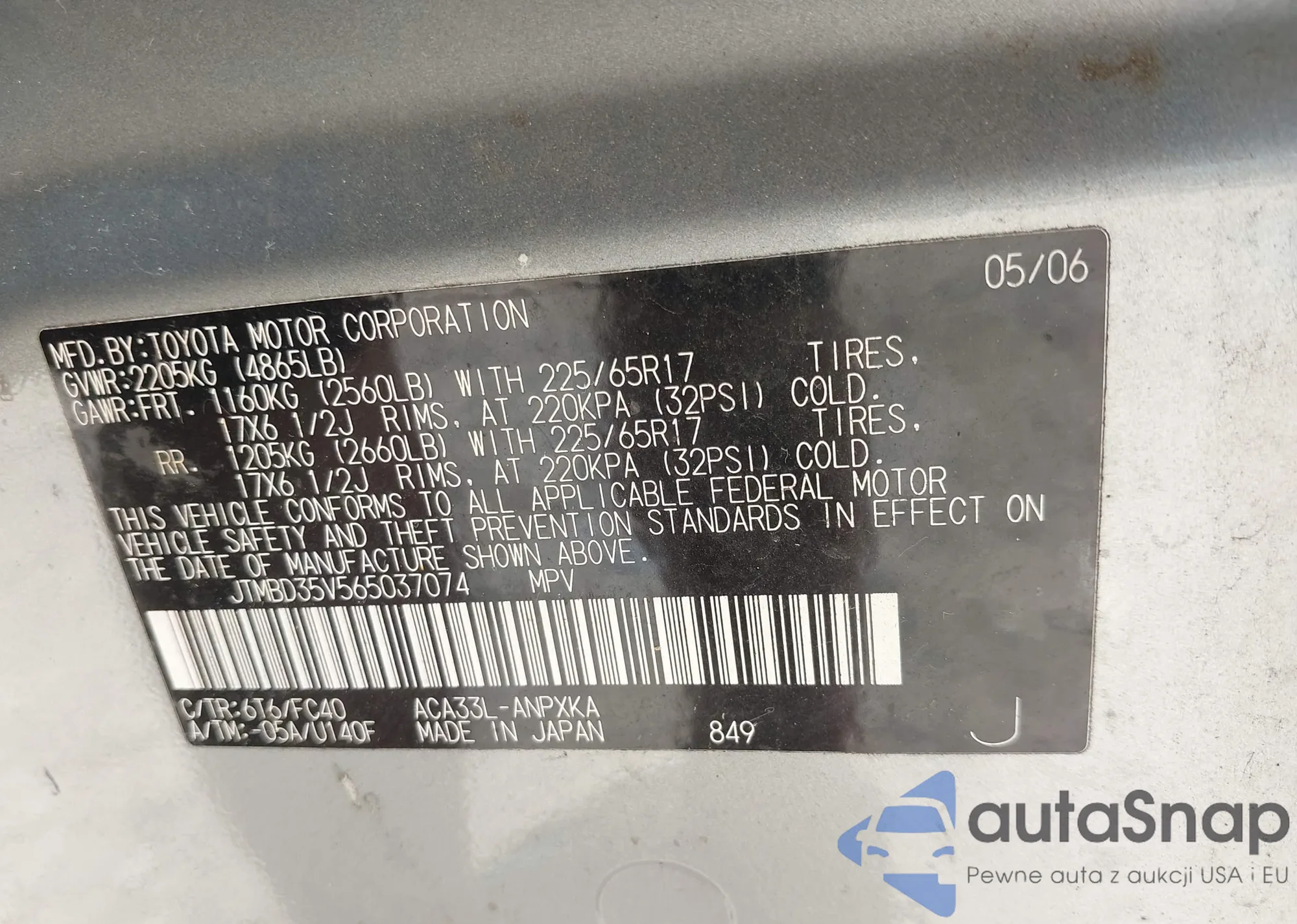 VIN: JTMBD35V565037074