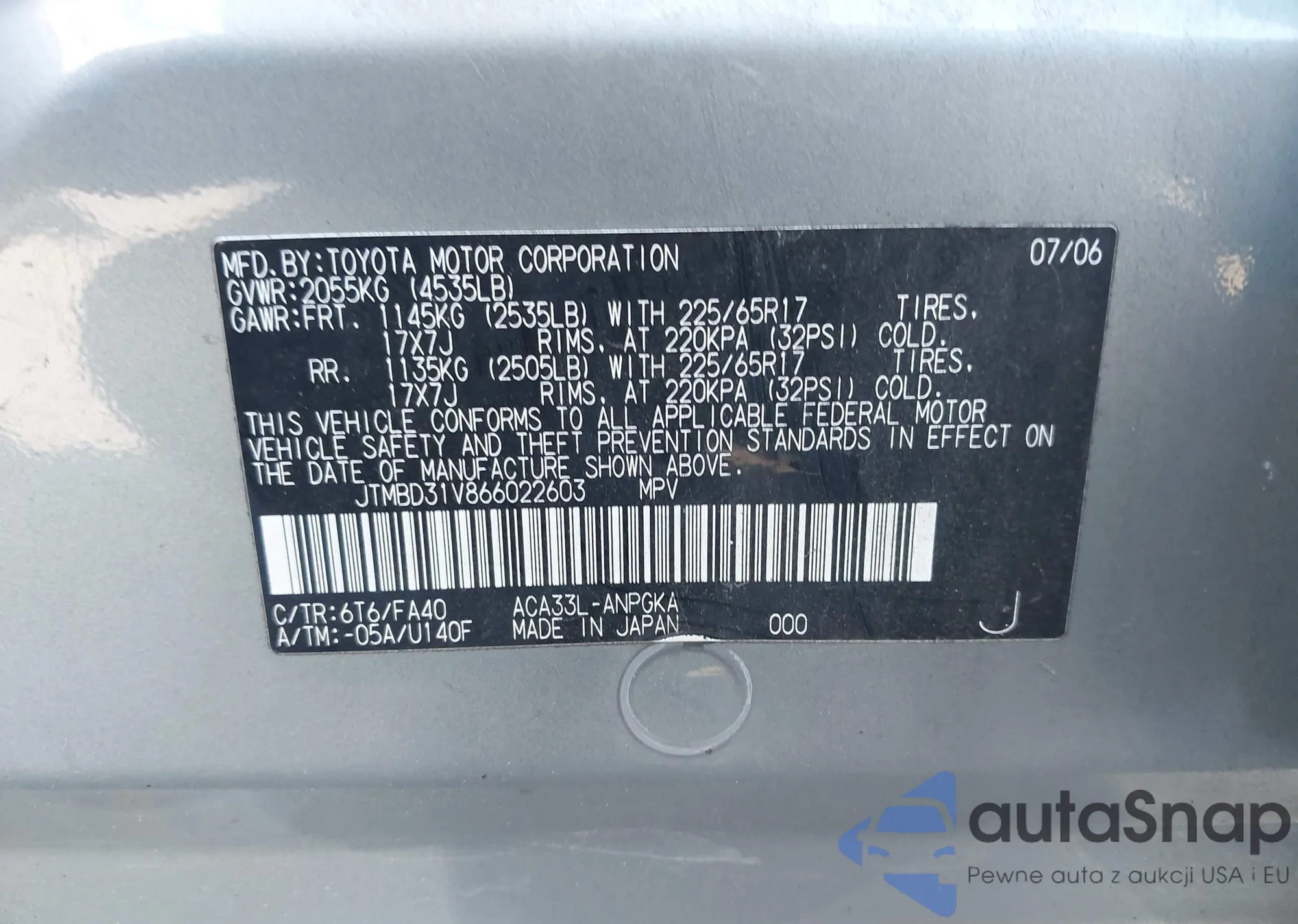 VIN: JTMBD31V866022603