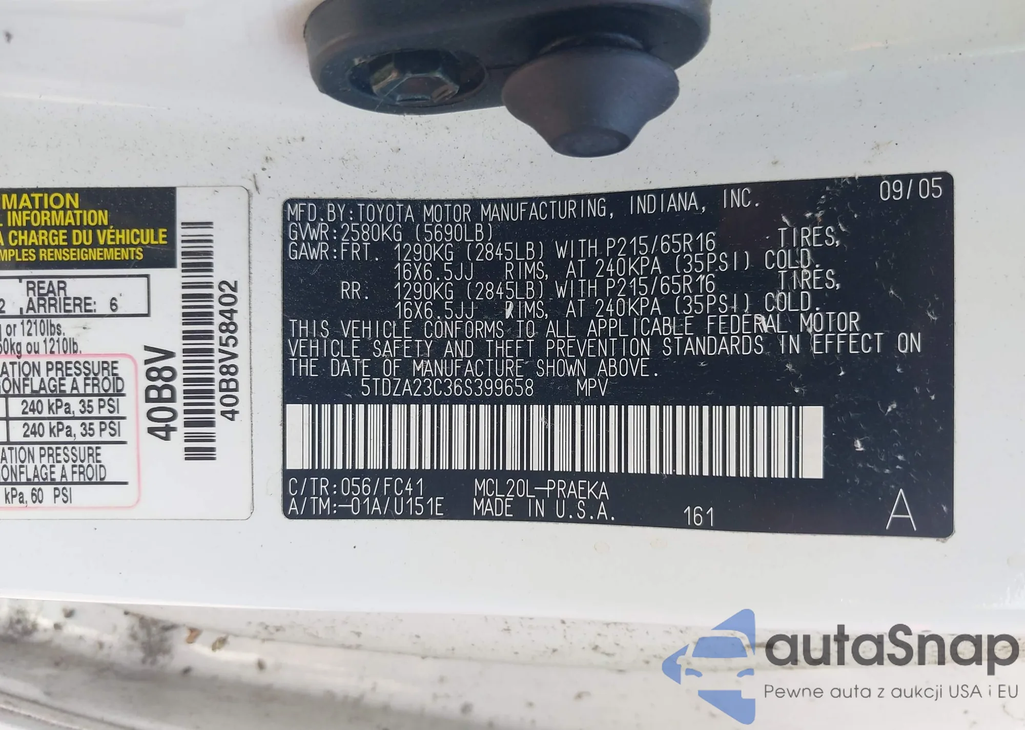 Toyota Sienna 2006 – Vehicle History (Sold at IAAI)