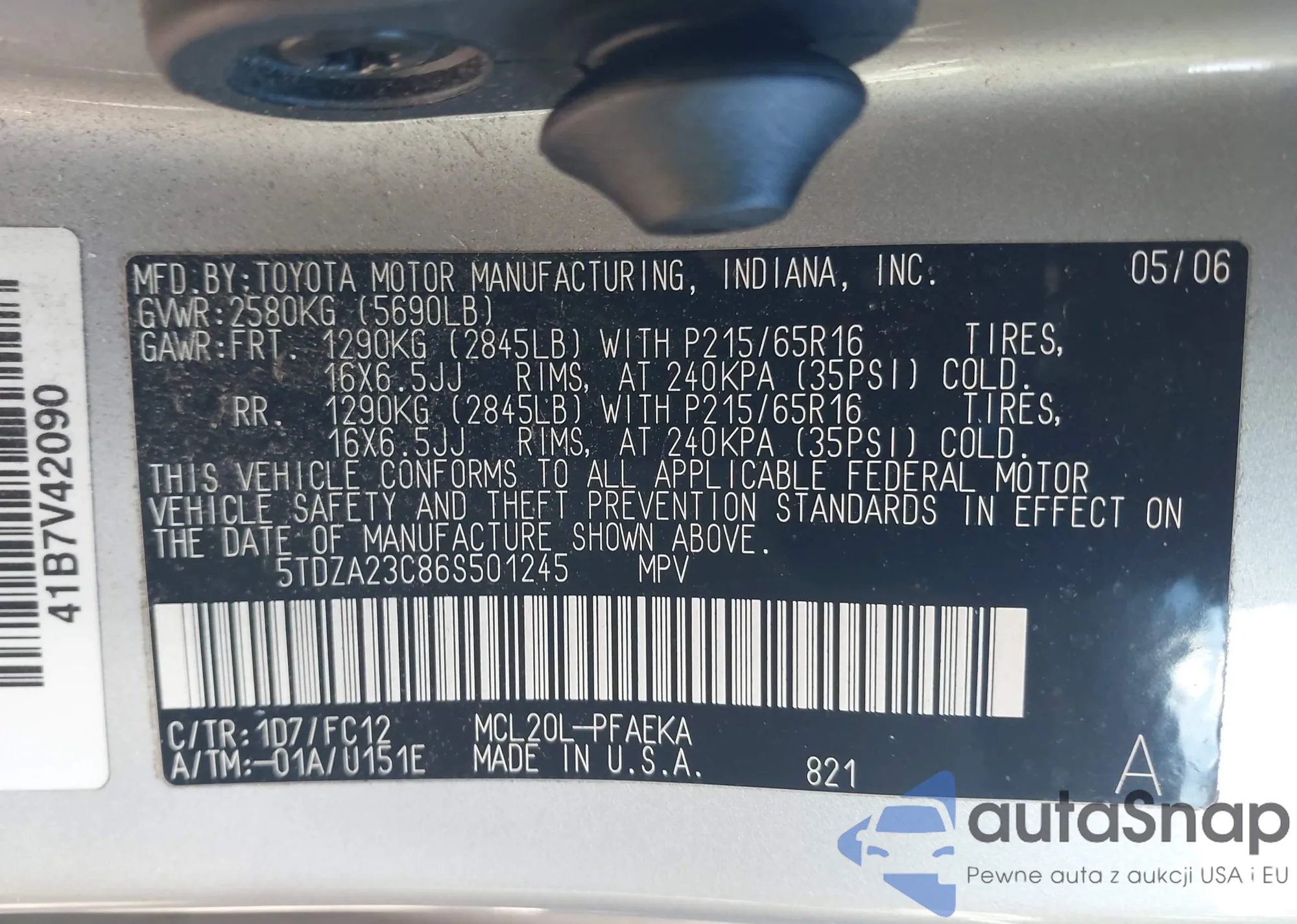 VIN: 5TDZA23C86S501245