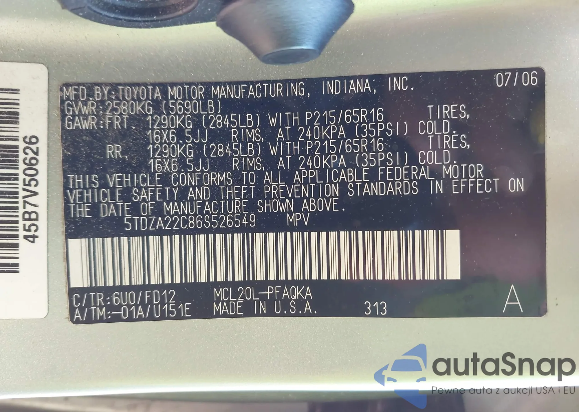 VIN: 5TDZA22C86S526549