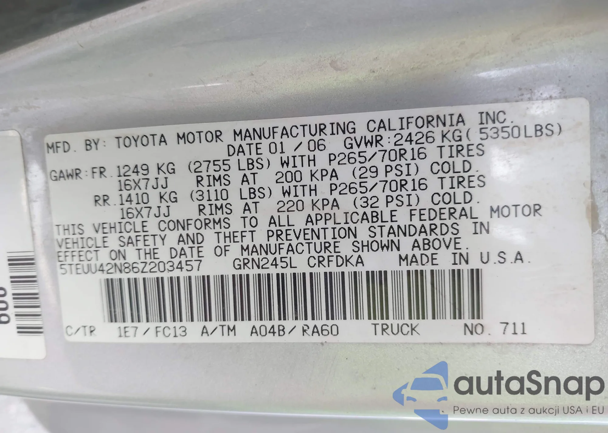VIN: 5TEUU42N86Z203457