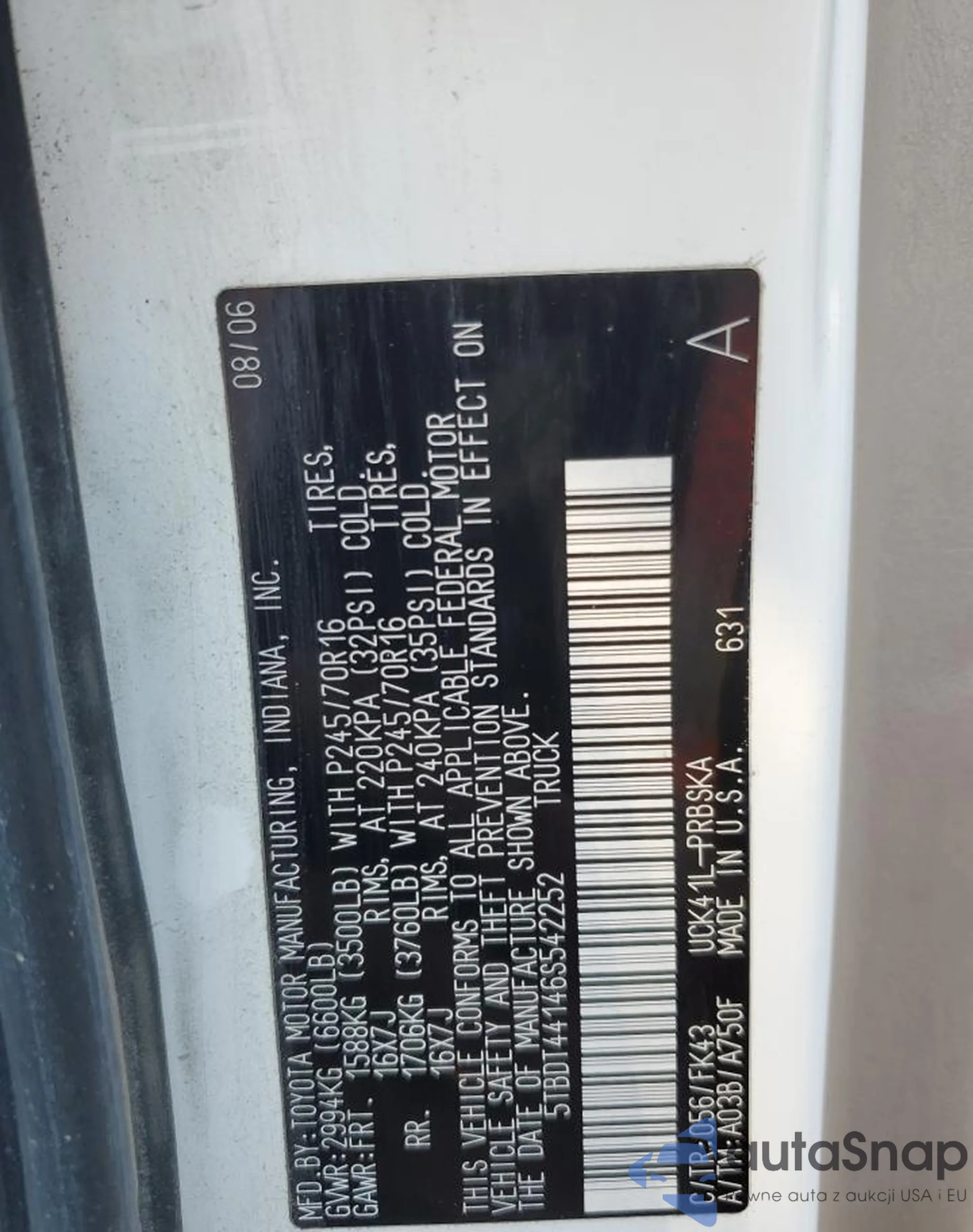 VIN: 5TBDT44146S542252