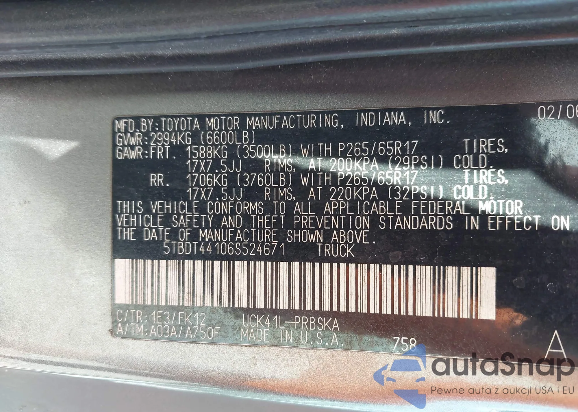 • VIN: 5TBDT44106S524671