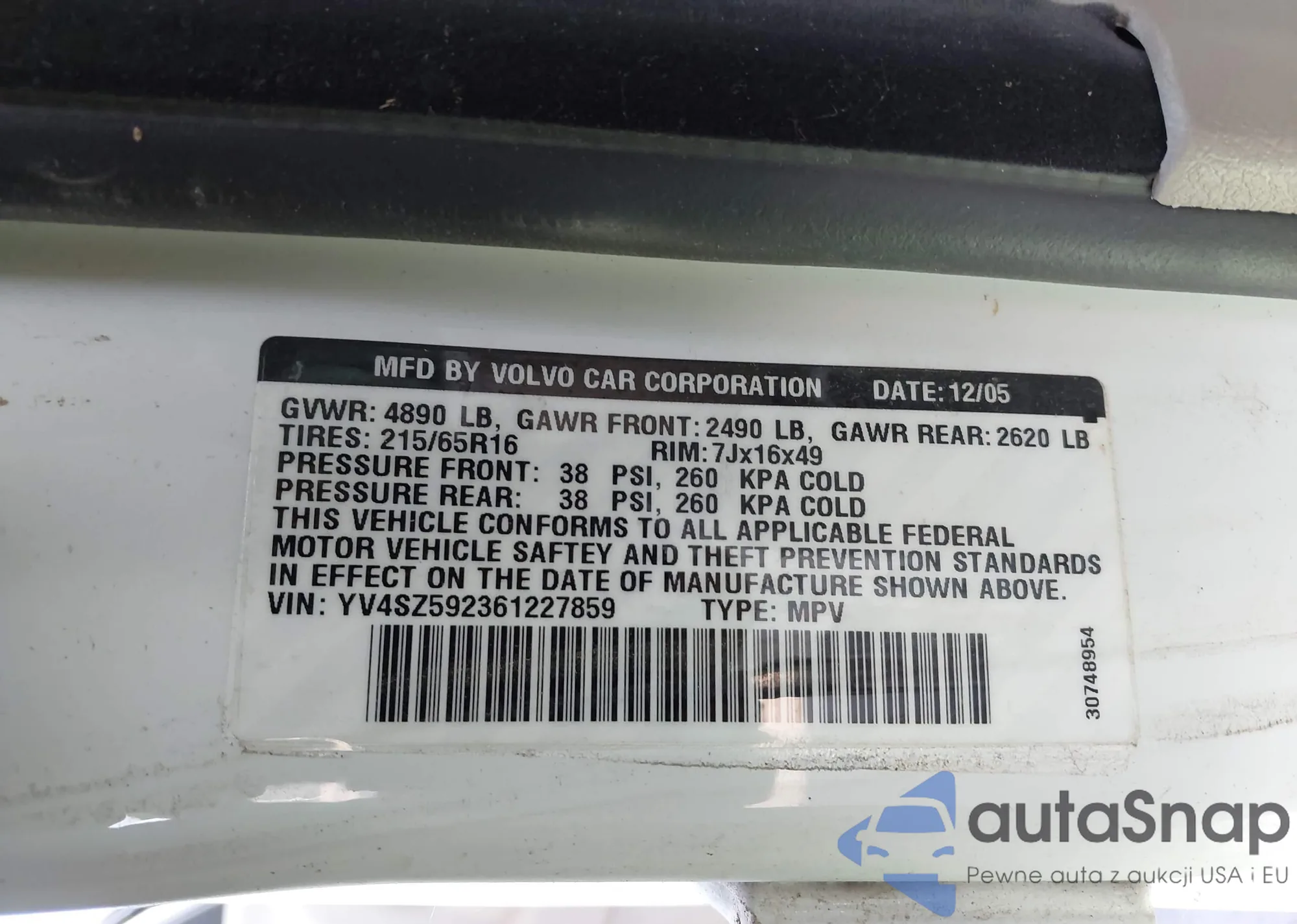 VIN: YV4SZ592361227859