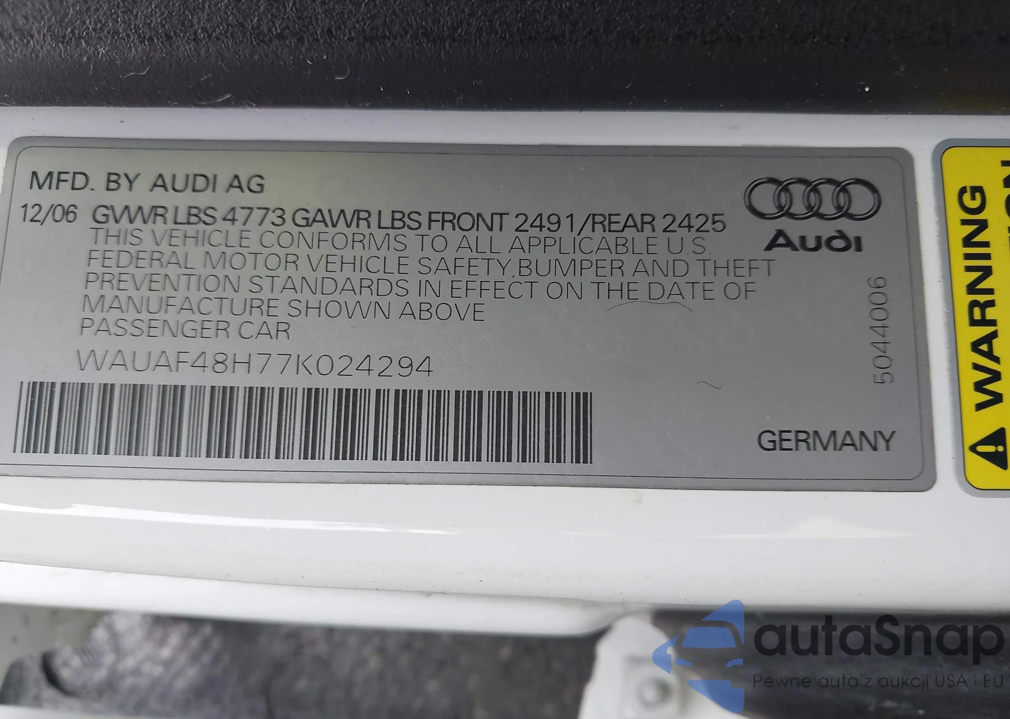 VIN: WAUAF48H77K024294