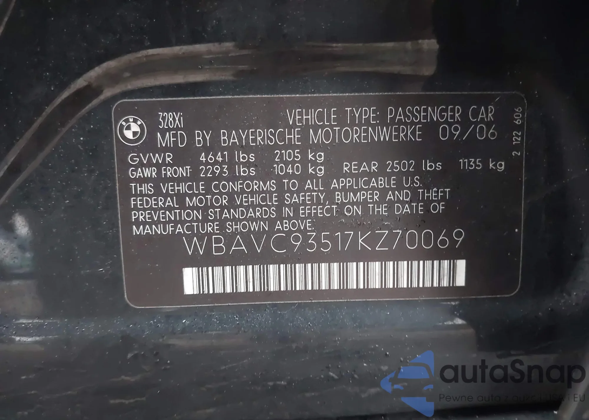 • VIN: WBAVC93517KZ70069