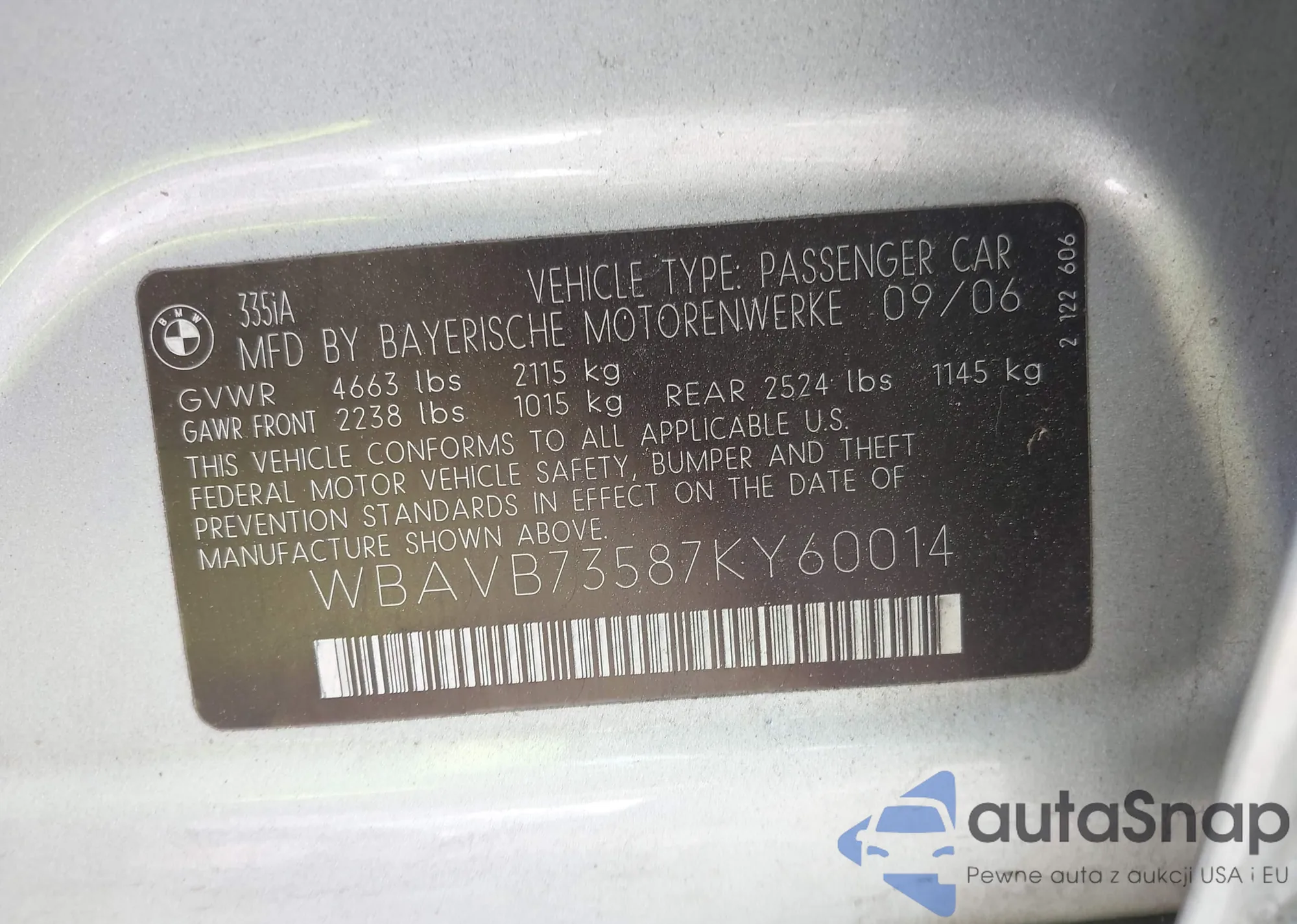 VIN: WBAVB73587KY60014