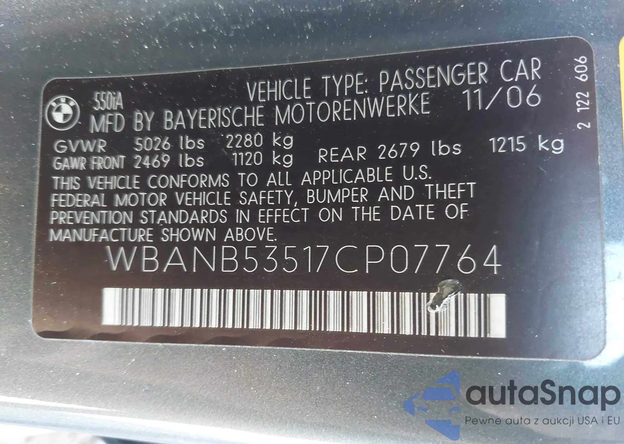 VIN: WBANB53517CP07764
