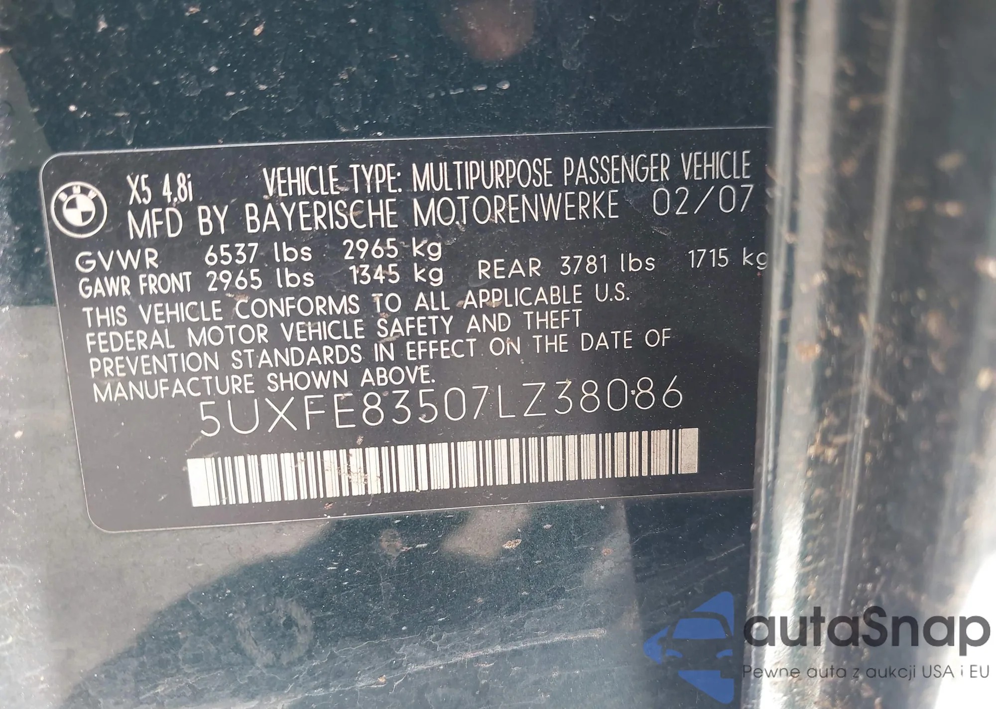 • VIN: 5UXFE83507LZ38086