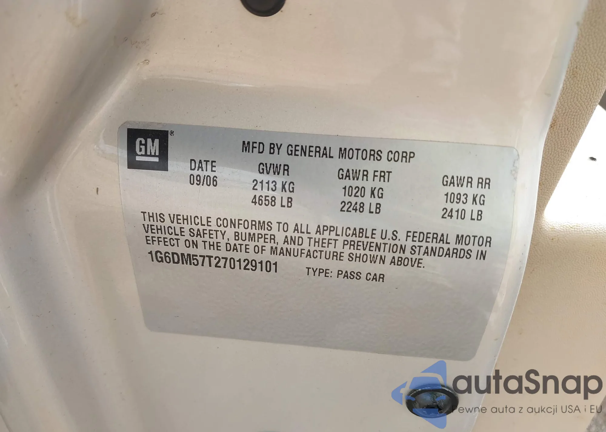 VIN: 1G6DM57T270129101