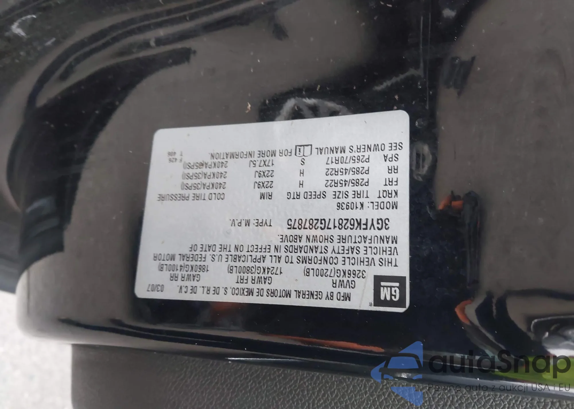 VIN: 3GYFK62817G287875