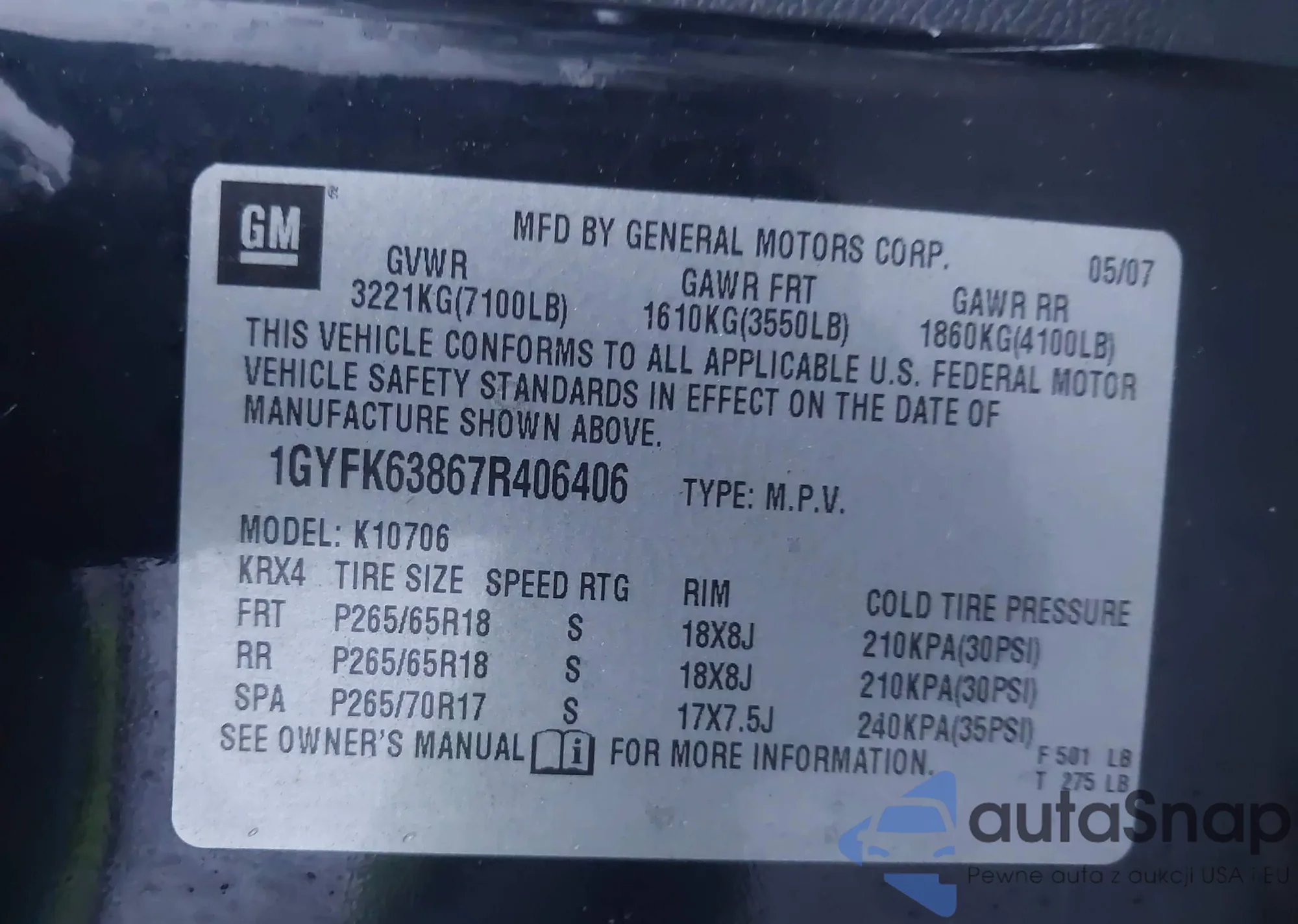 The car Cadillac Escalade 2007 (VIN 1GYFK63867R406406) is sold by an unverified seller. We recommend checking the Carfax report and confirming registration possibilities before purchase.