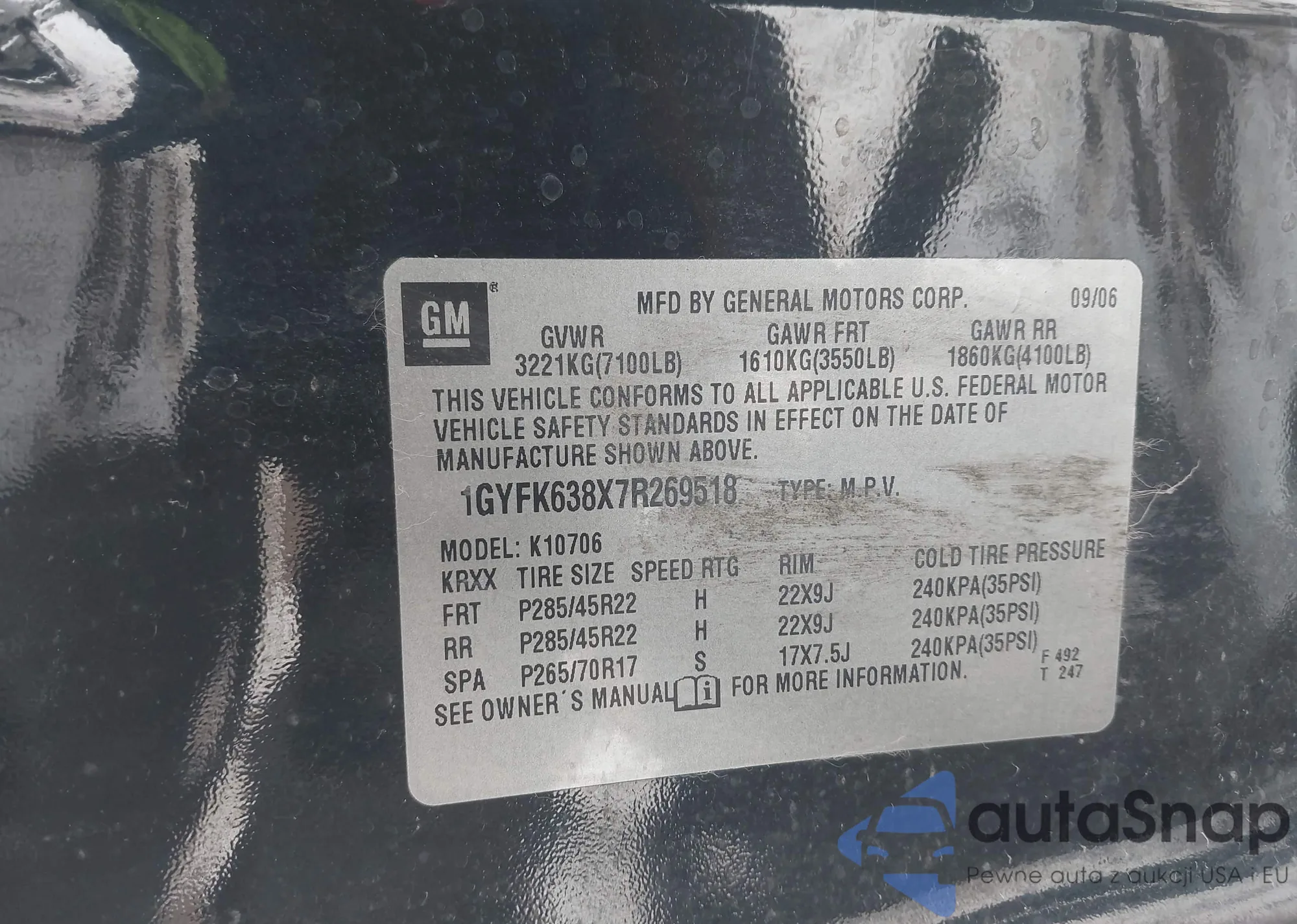 • VIN: 1GYFK638X7R269518