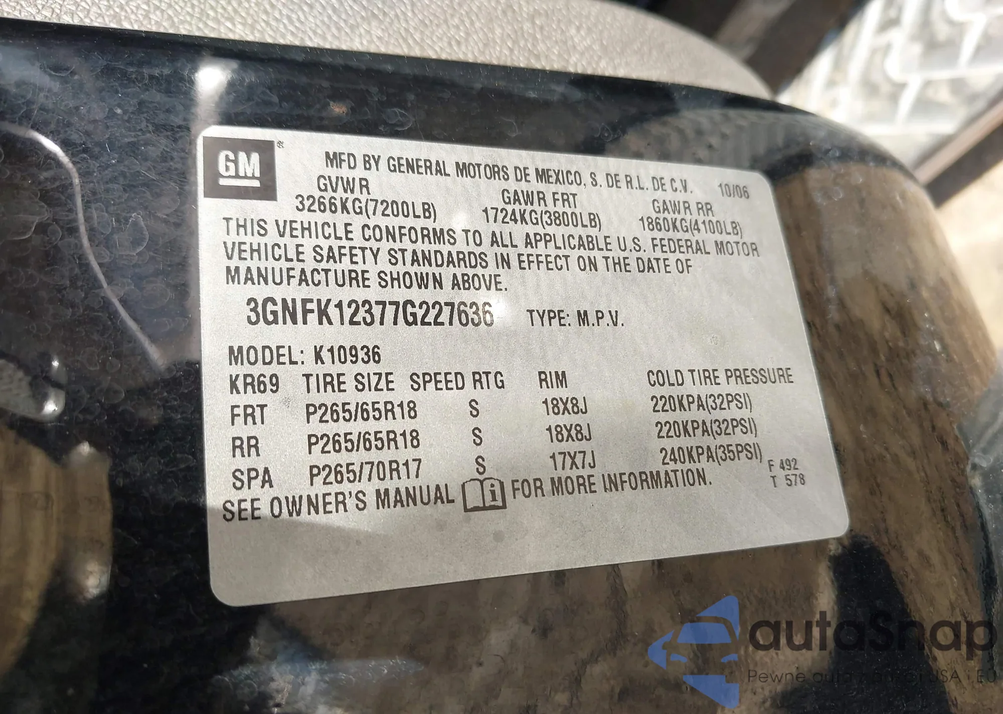 VIN: 3GNFK12377G227636