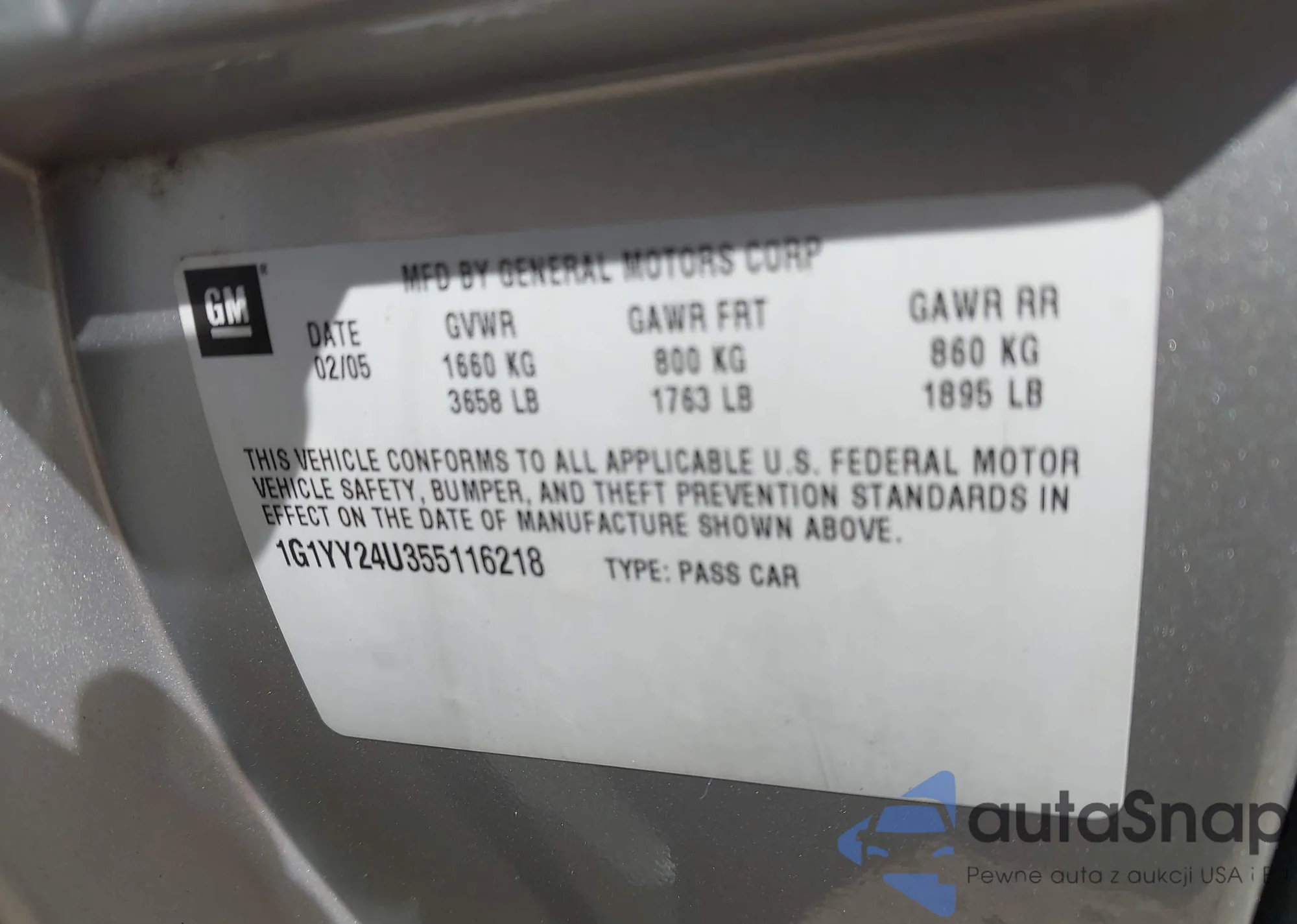 The car Chevrolet Corvette 2007 (VIN 1G1YY25U675110091) has documents that prevent registration. Export and registration may be difficult. Contact AutaSnap experts to find alternatives.